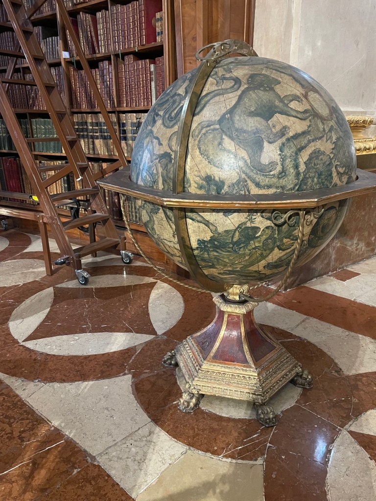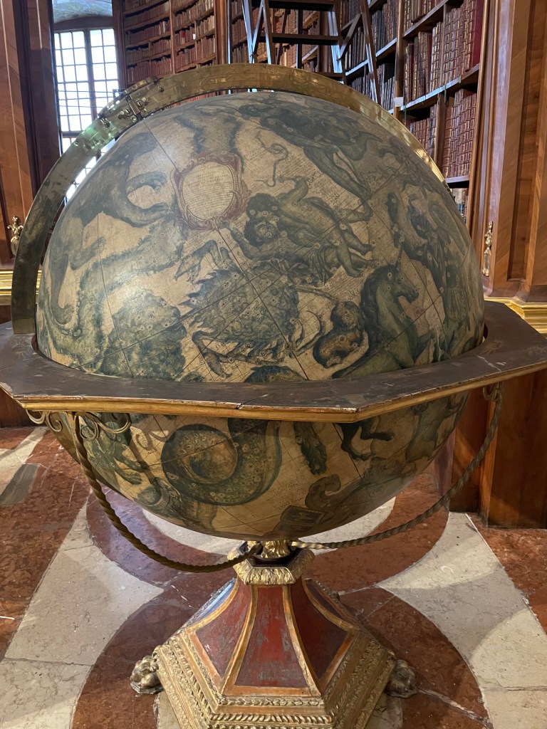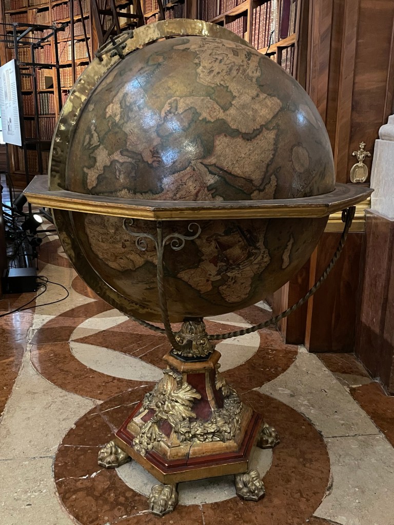 There are 4 large world globes in the library. They are a really fascinating look at how our world was seen in the 1600s.