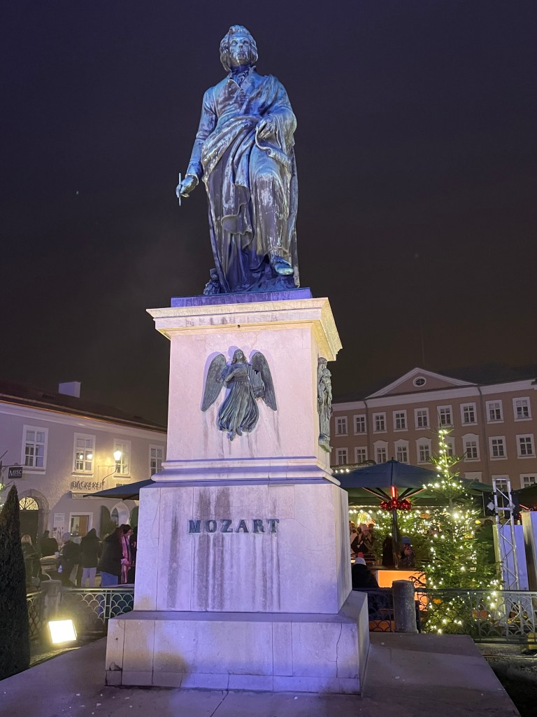 In the centre of the Mozartplatz is the Mozart statue by Ludwig Schwanthaler. The statue was to be erected in 1841 on the 50th anniversary of W. A. Mozart’s death. However, the unveiling of the monument was delayed by a year because a Roman mosaic had been found in the ground, which took time to recover. On 4 September 1842, the statue was ceremoniously unveiled in the presence of Mozart’s sons. The Bavarian King Ludwig I was an important sponsor of the Mozart statue and donated the marble pedestal. A copy of the Roman mosaic can still be found at the foot of the statue.