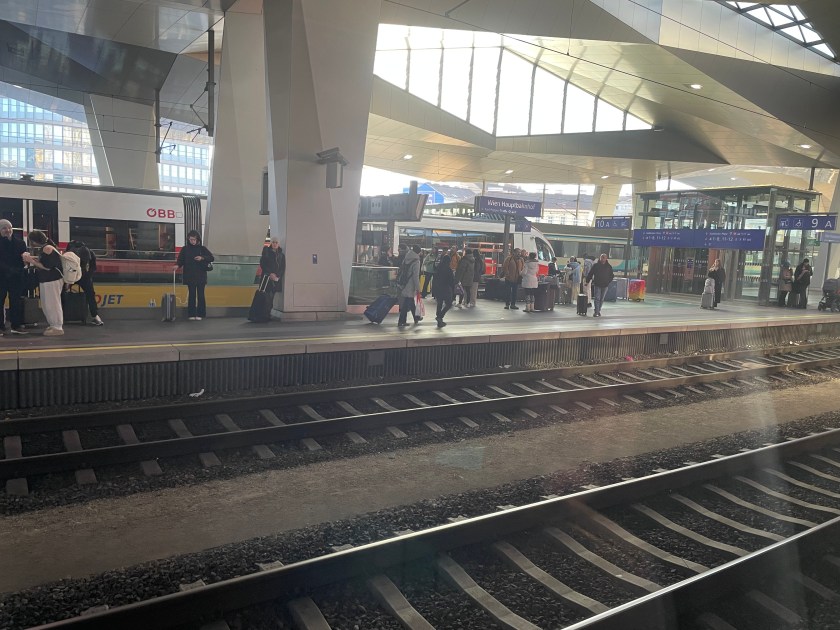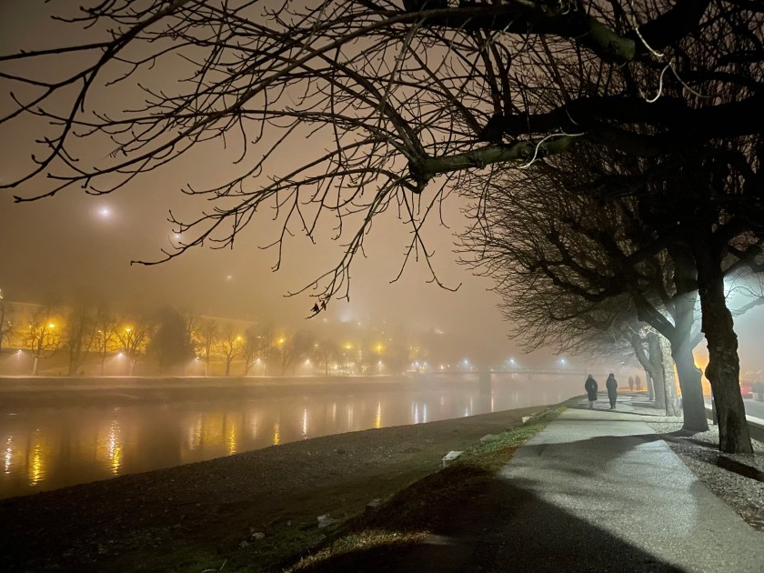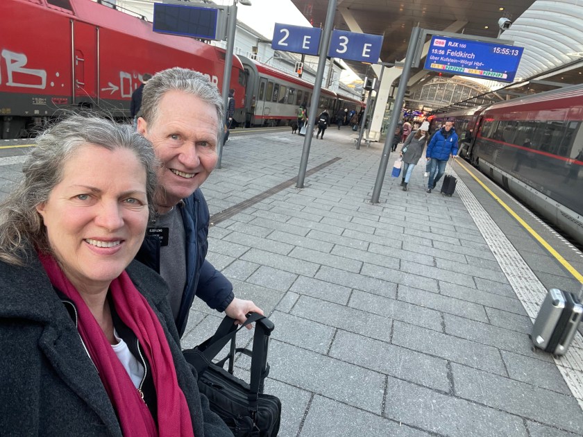 As we got closer to Salzburg, it got foggy out, then the fog turned to frost on the ground and it was a white magical wonderland out the window. We left sun in Vienna.