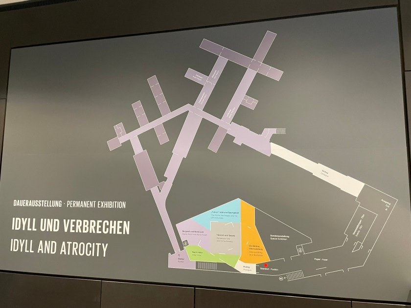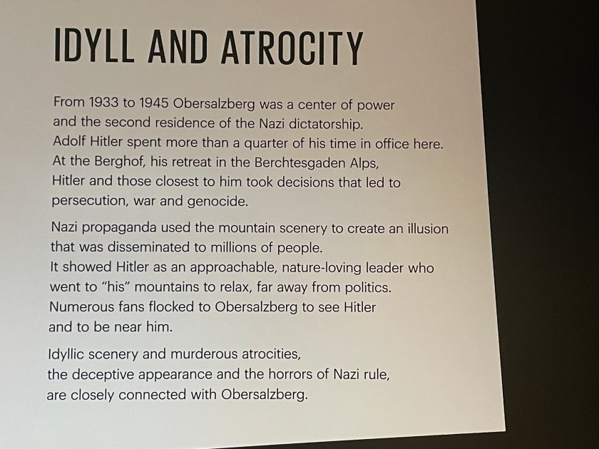 They’ve re-done the Documentation Center (that opened in 1999). The new Center opened in 2023, completely re-done in a new way–showing the contrast between Hitler’s peaceful mountain get-away, and the horror (this is where Hitler wrote most of Mein Kampf and where he planned the genocide and extermination camps. They call it “Idyll and Atrocity.”