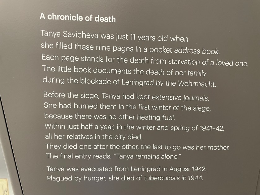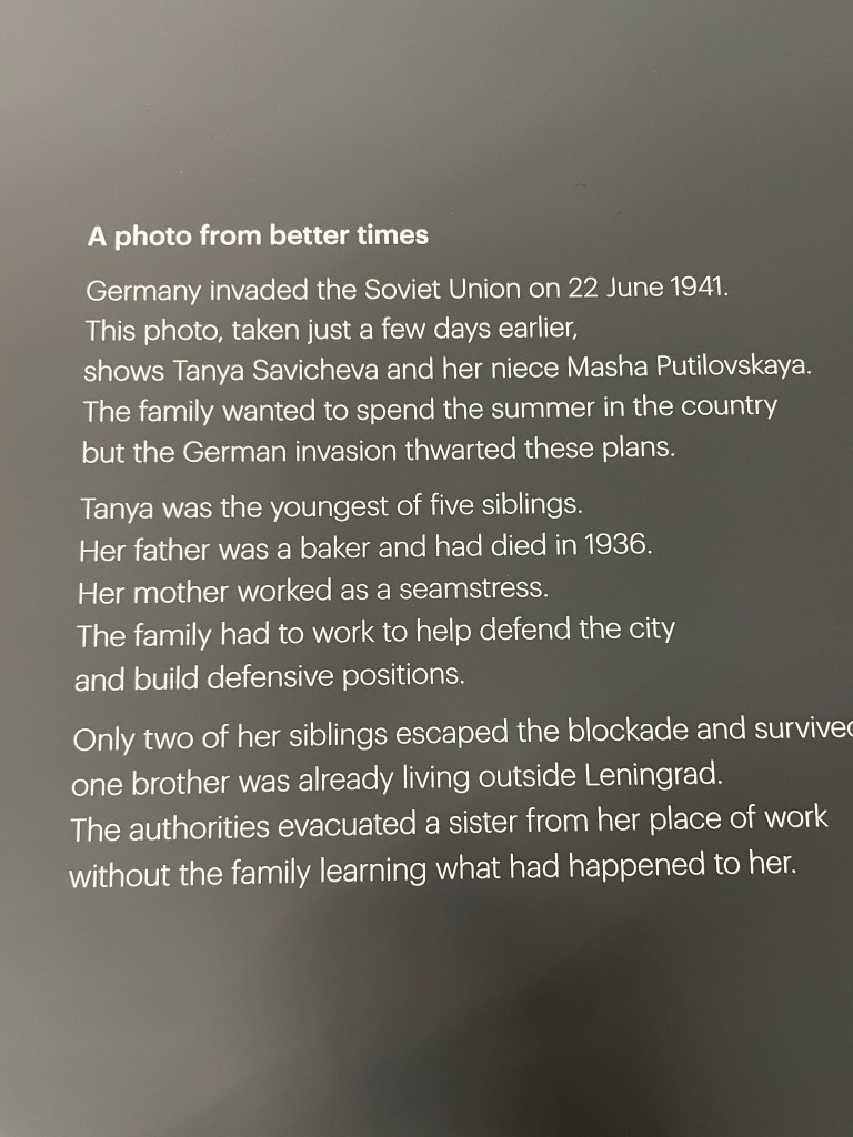 This story was heartbreaking. Meet Tanya Savicheva, age 11. Read the English descriptions in the displays below.