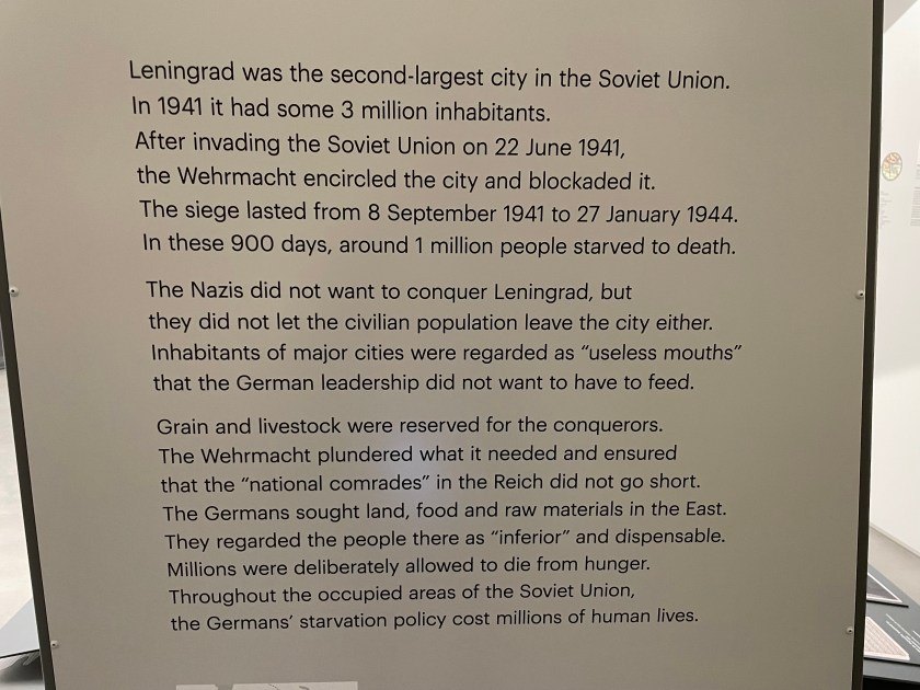 The Center had an audio tour on phones with headsets that lasted 80 minutes. It ended in part of the bunker that Hitler built there towards the end of the war when they started worrying about getting bombed. It was fascinating to go through all the displays and then into that bunker. Wow.