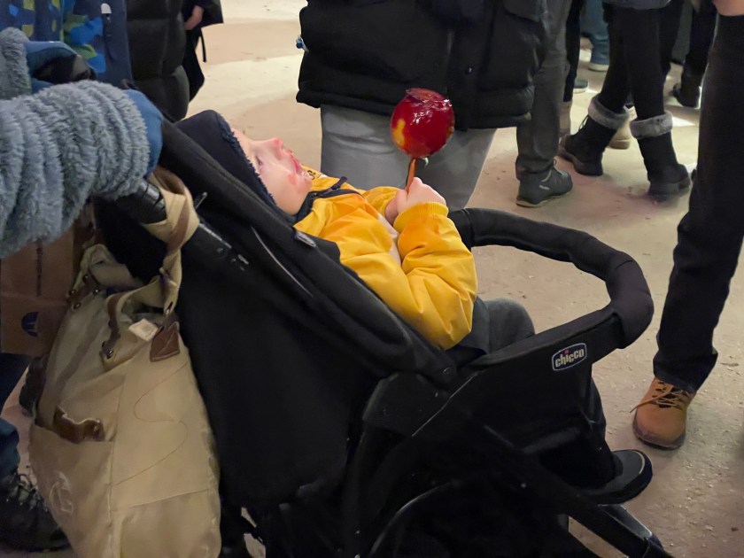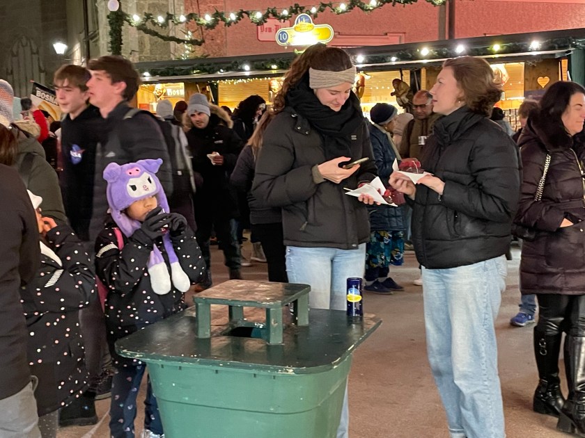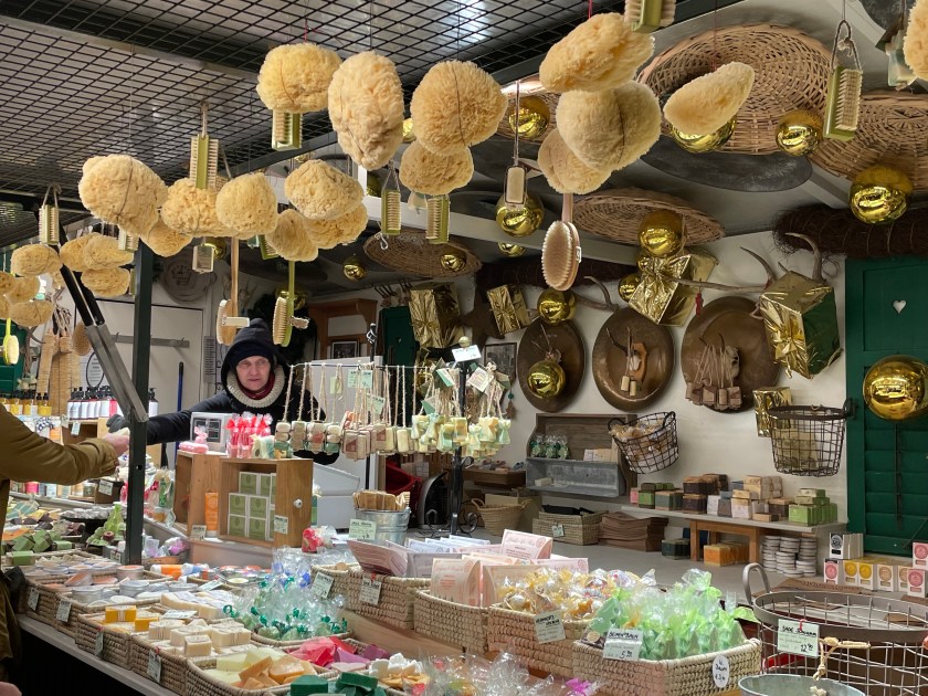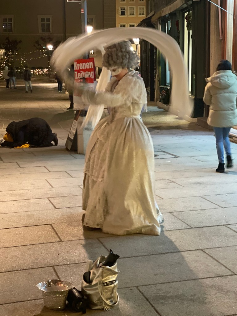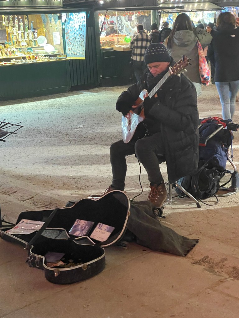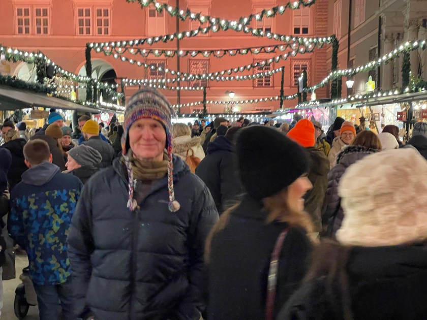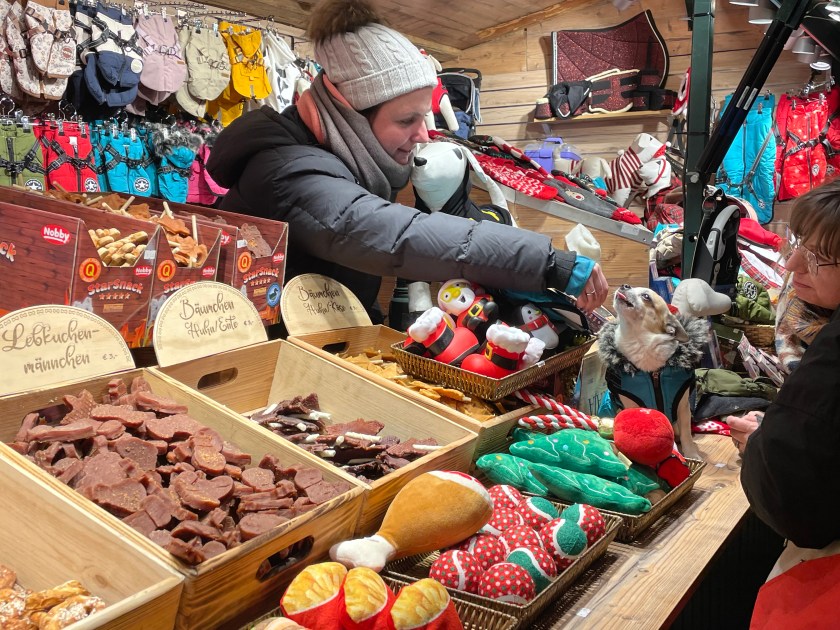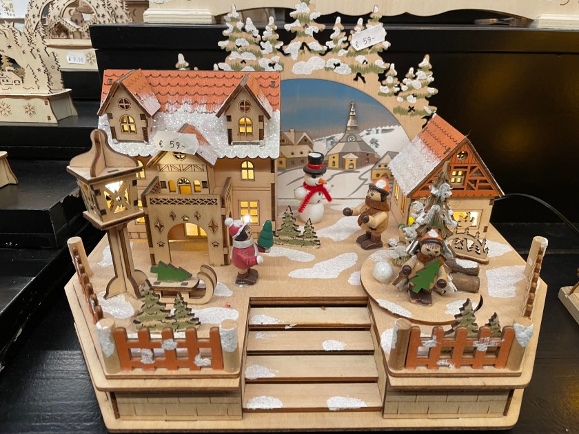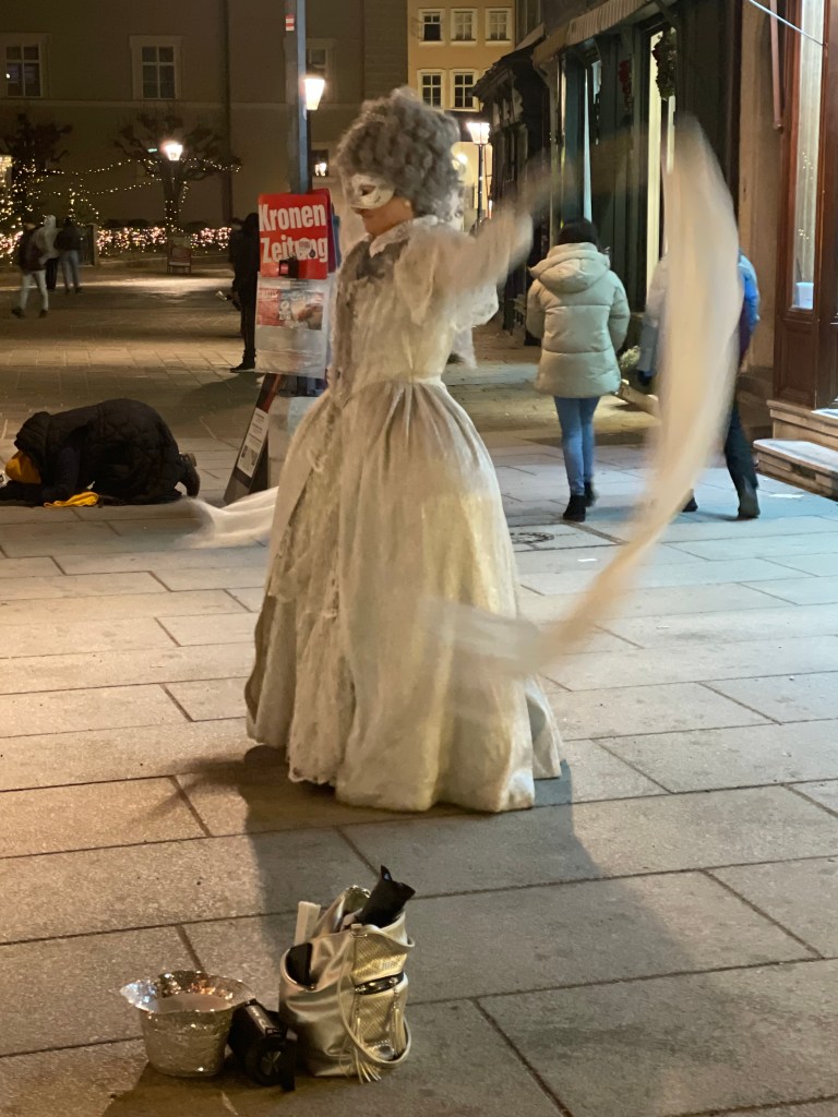 Next to the Residenz Market. Something magical happened while we were in this market–music started floating over us from three different church bell towers. There were brass musicians playing Christmas carols, one after the next, from the church towers. We learned it’s called “Trumblasen” (tower blowing).