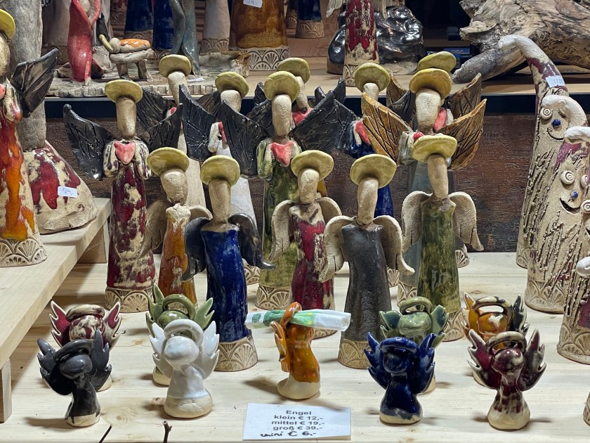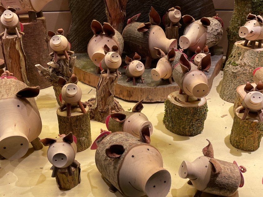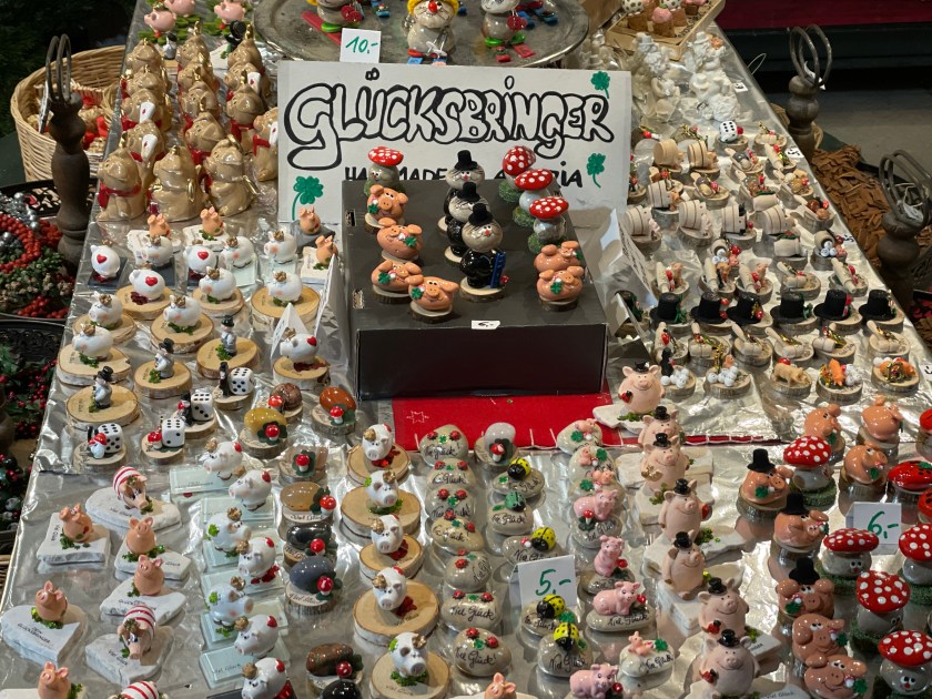 As we approach the New Year, Glücksbringer (luck bringers, or good luck charms) are out for sale. Pigs are a symbols of good luck here.