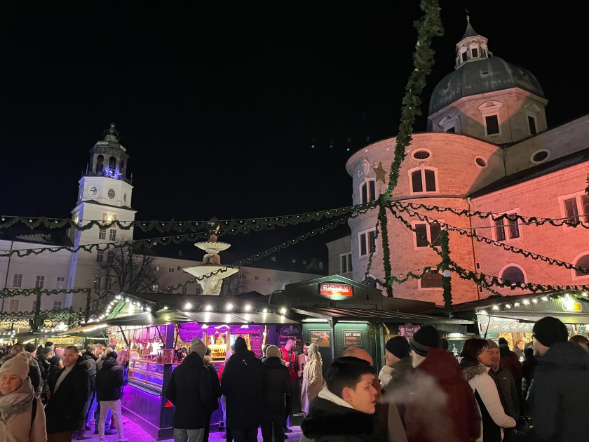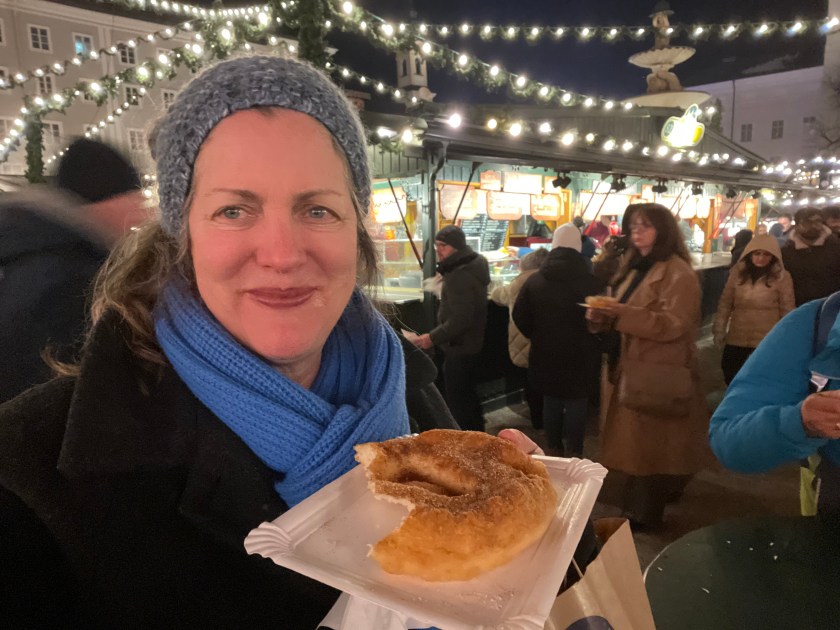 After a full day of sightseeing, it was fun and relaxing (although we were tired and hungry) to wander through three more Christmas Markets and decide on something good to eat. We are LOVING Salzburg!