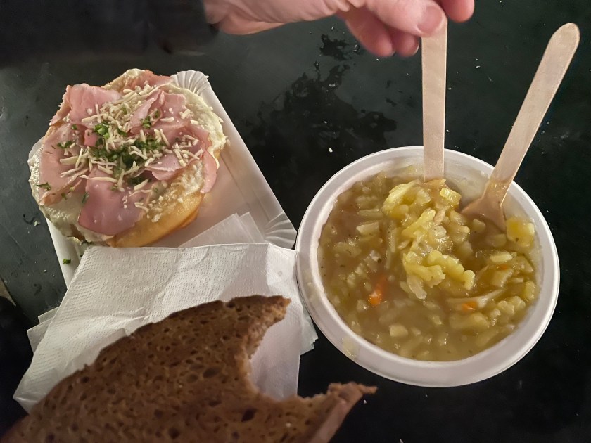 For dinner we chose Bauernkrapfen–first with ham & cheese, and Potato Soup, then sweet ones with Zimt (cinnamon) & Nutella. These were like the Langos scones in Germany–a big warm scone topped with goodness.