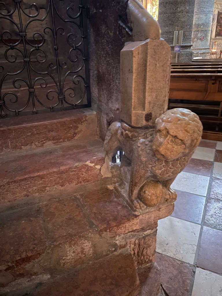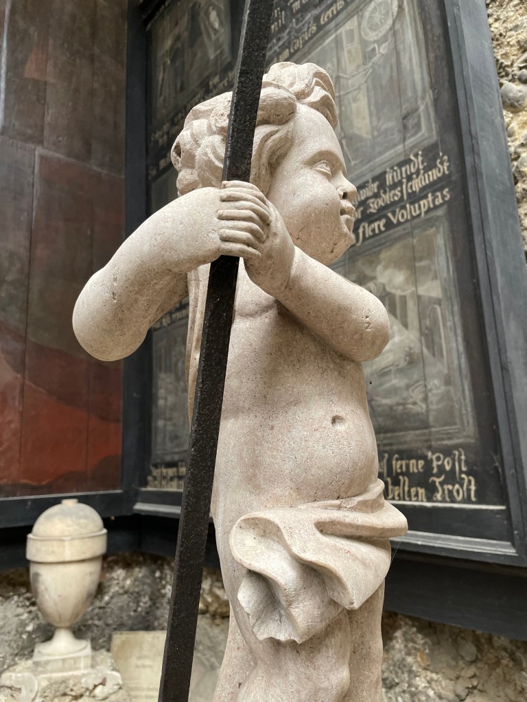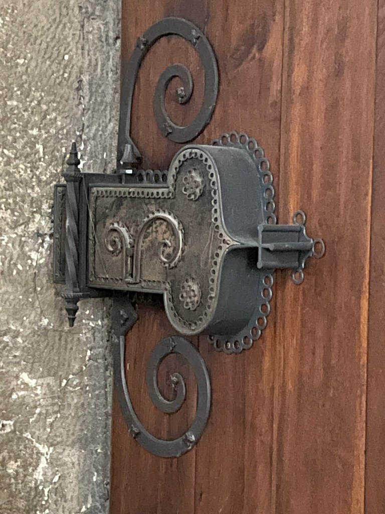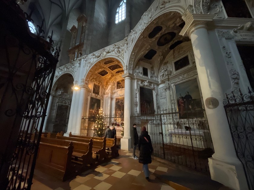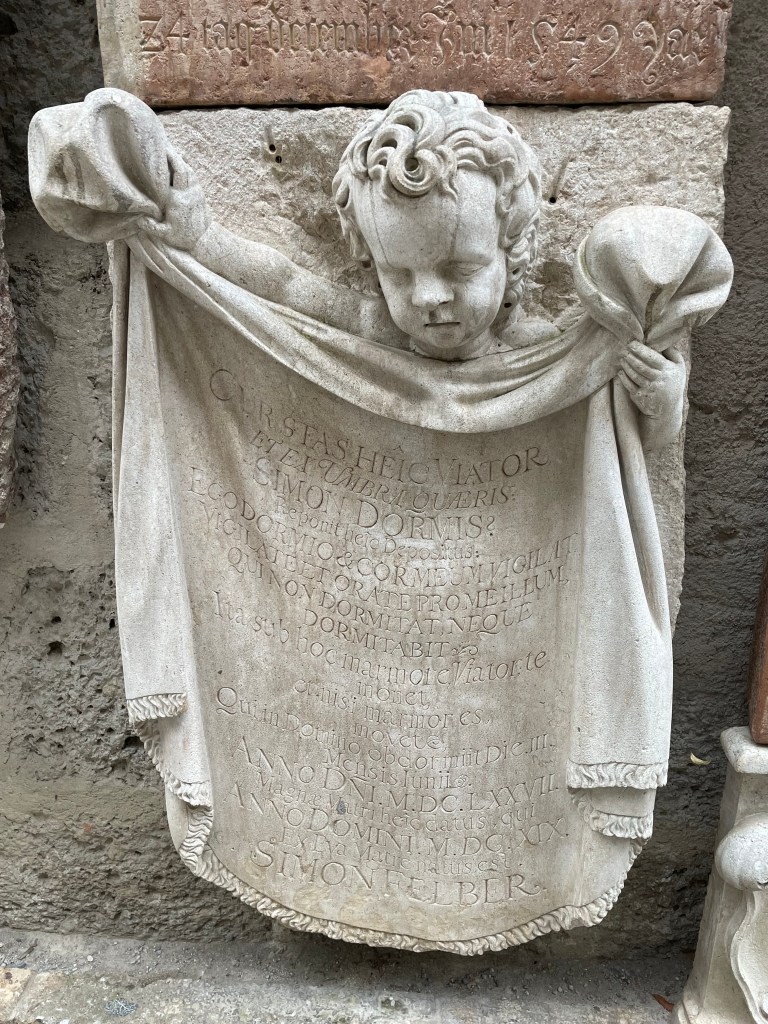 At the end of the street we went into the very old Stadtpfarrkirche. It was gated inside, so you could only look in on the chapel. The gate was intricate and beautiful. We do not tire of seeing inside all these churches.