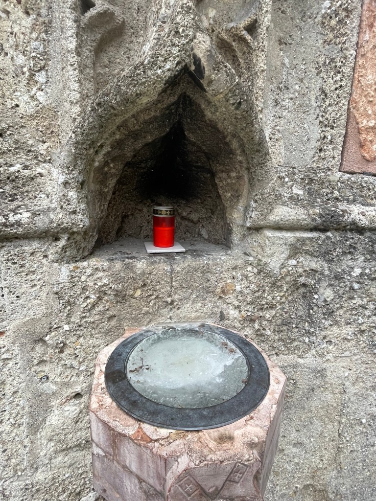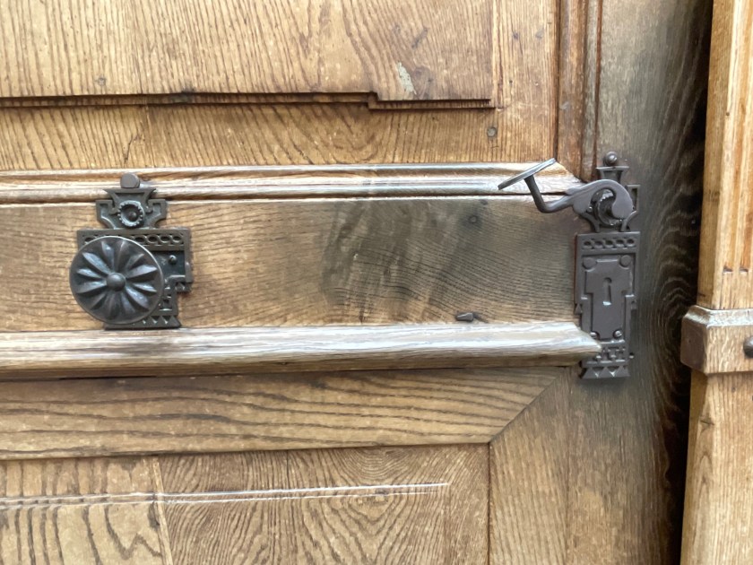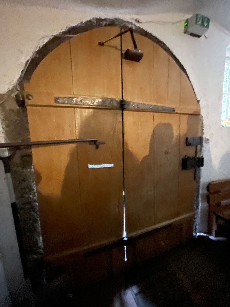 We were right by our favorite cemetery and the old 1491 Church/Chapel where they’d had the funeral Saturday when we were there. Got to go inside today. I love the interesting headstones of iron there. Everything was covered in frost.