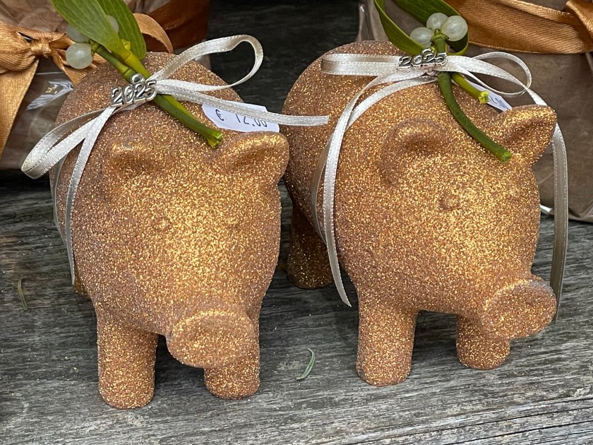 Then we went back to the main street through the old town. We enjoyed the Christmas lights and the interesting signage hanging above us.