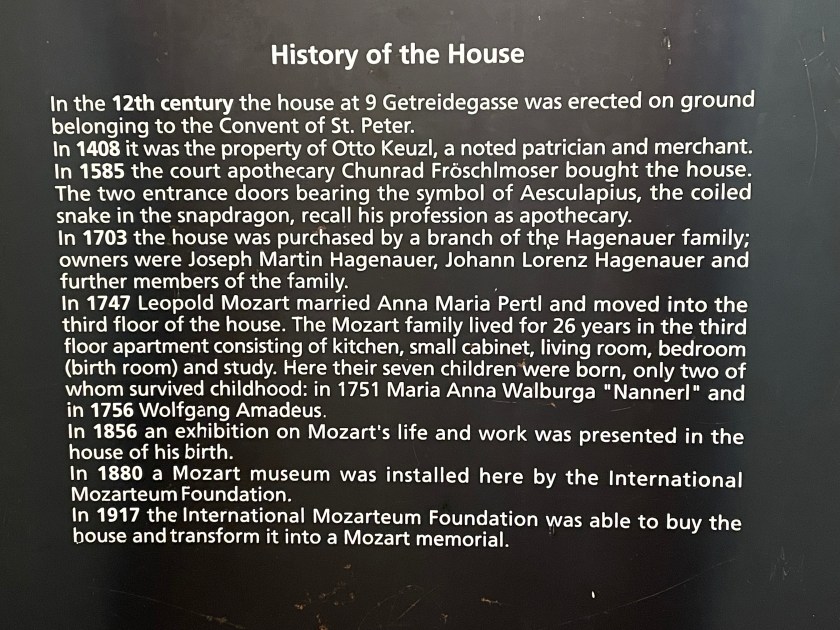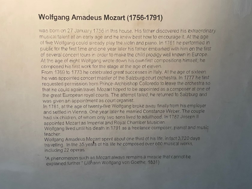 I got the feeling that there are several places in Salzburg competing for the treasures from Mozart’s life. This museum/home focused on his younger years and family life. I’m glad we visited.