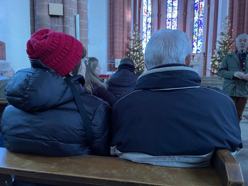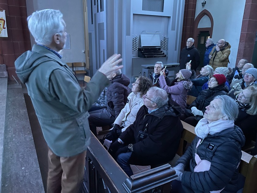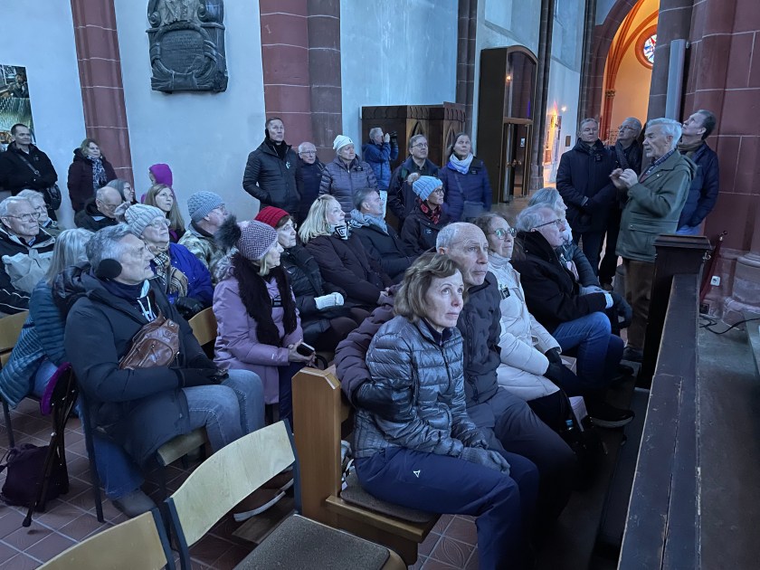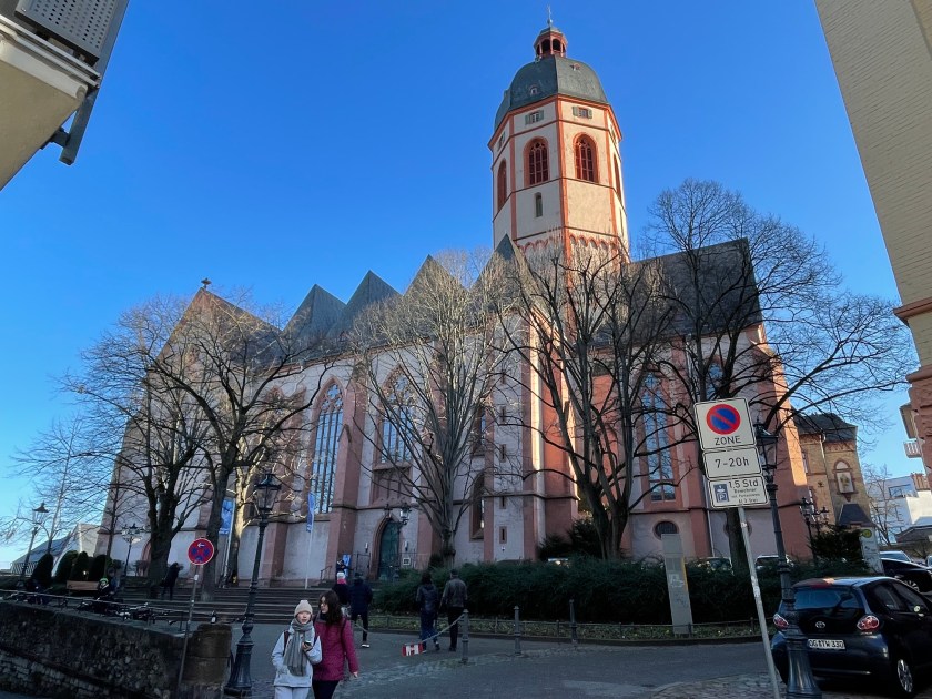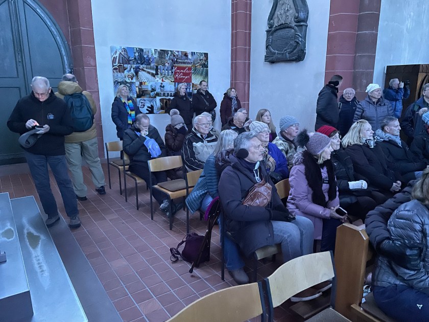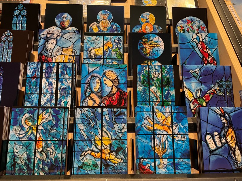 It was interesting to learn more about Chagall. I didn’t know he was Jewish and most of his family was killed in WWII. He’d fled to France. The Bishop in Mainz begged him to create a single window for the church here. It took him 2 years to decide to do it and when he finally agreed, he wanted it to represent reconciliation and peace. His themes were from the Old Testament.