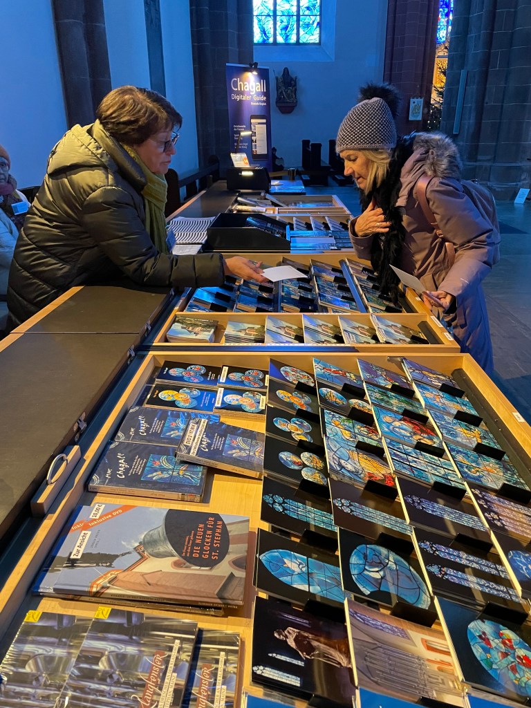Genesis: After completing the restoration of the church, which had been badly damaged in the war, Pastor Klaus Mayer turned to the Jewish-Russian artist Marc Chagall (1887-1985), the master of color and the biblical message, in the spring of 1973 with the request to make a statement in the east choir of St. Stephen’s Church with church windows designed by him. The contact was followed by letters and later meetings. The artist began designing a central window in December 1976. On September 23, 1978, the first Chagall window with the “Vision of the God of the Fathers” was presented to the parish.