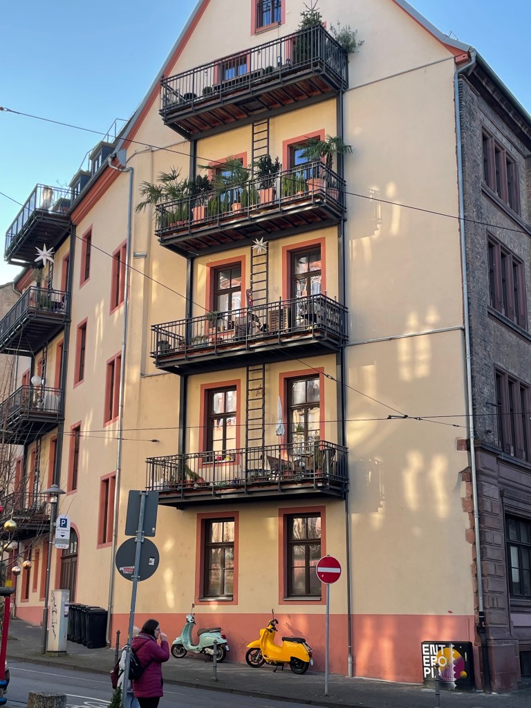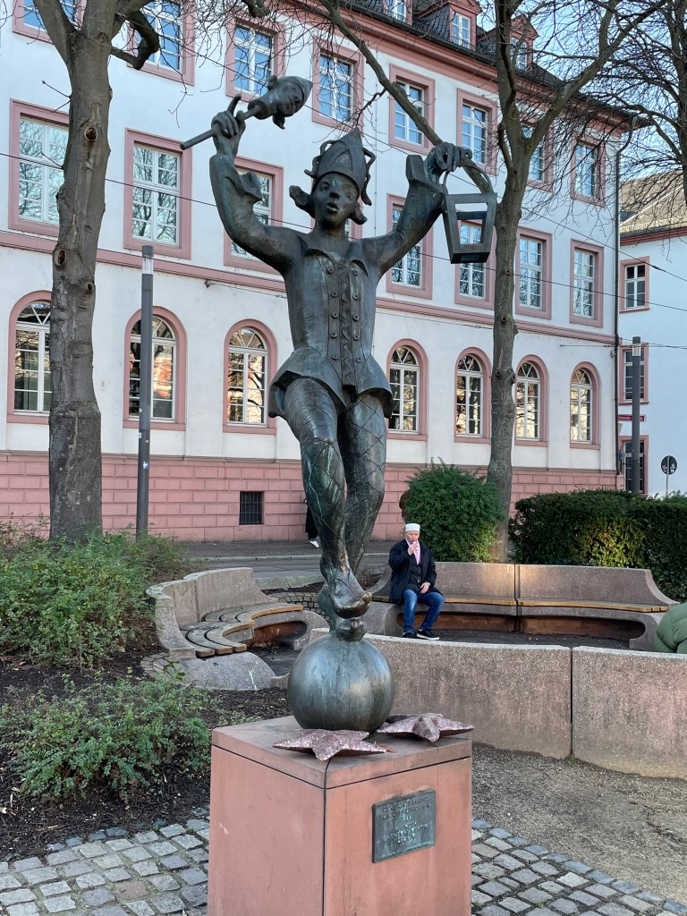 Here’s a marker that says on 27 Feb 1945, 1200 people died here in the heaviest bombing unleashed by Hitler in Mainz. NEVER AGAIN WAR.