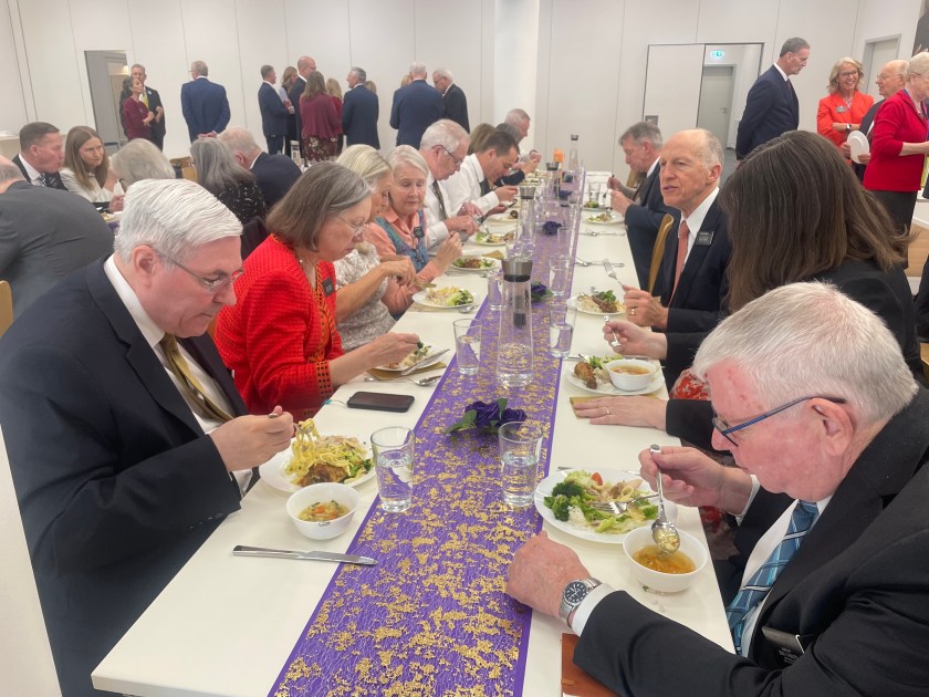 Elder McConkie spoke last. First he thanked us for our ZL service. Then he gave a presentation about the church in Czechia/Slovakia and how the Church got started there–he was in the middle of it all in the 1990s. The Church needed 20,000 signatures with name, a number like our Social Security #, and signatures, in order for the Church to be recognized there. They hired a professional team to collect signatures. In 3 weeks they got something like 185 names. Elder McConkie (a former Mission Leader there) was brought in to take 80 Czech missionaries into Slovakia to gather signatures. (They didn’t speak Slav so well.)
