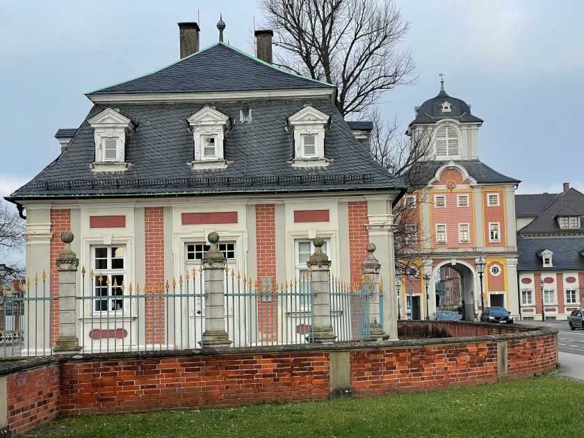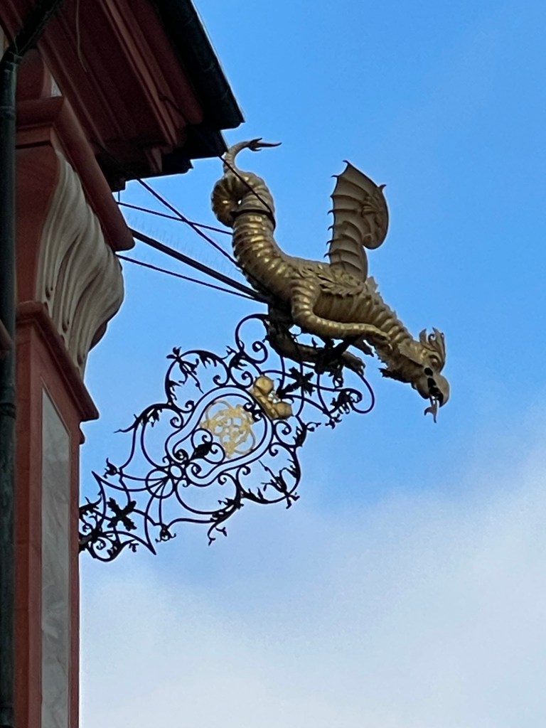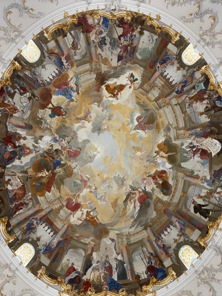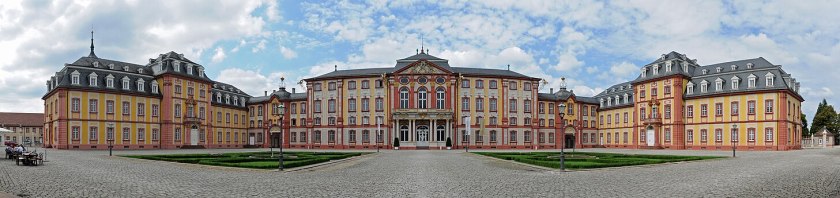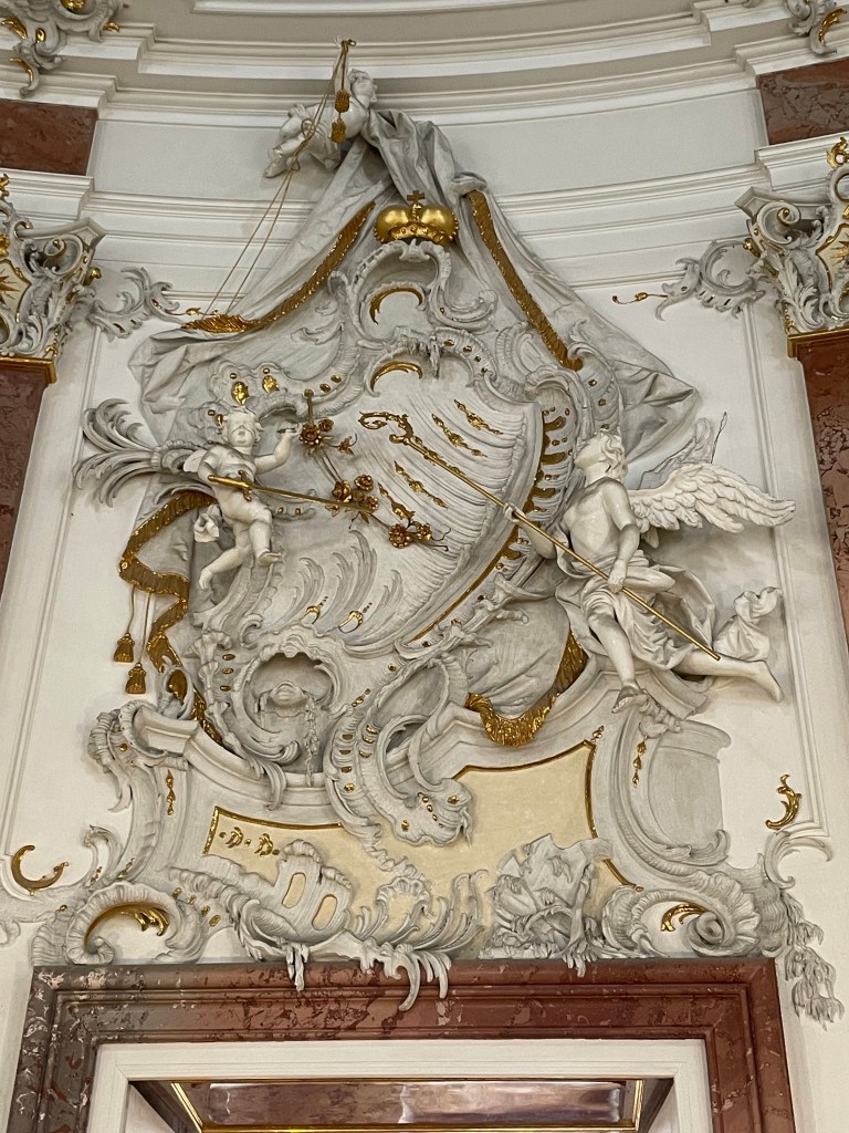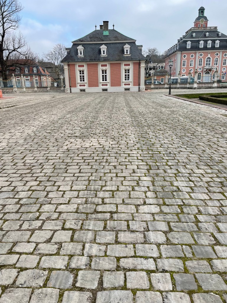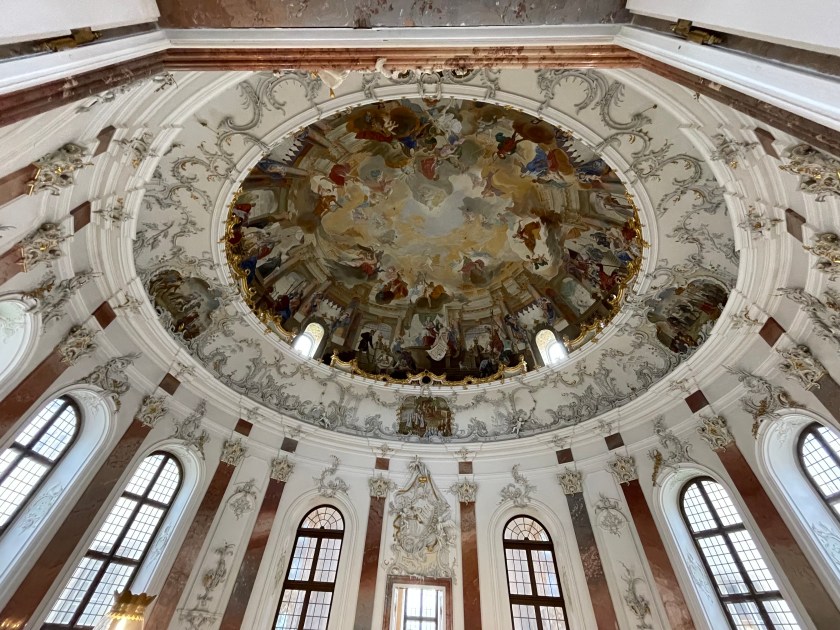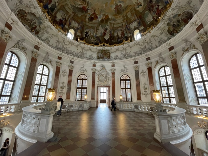 Bruchsal Schloss was our first destination today, about 1.4 hours south of Frankfurt. This is a large castle/palace complex filled with colorful pink and yellow 1700s buildings. Symmetrical, orderly, stately.