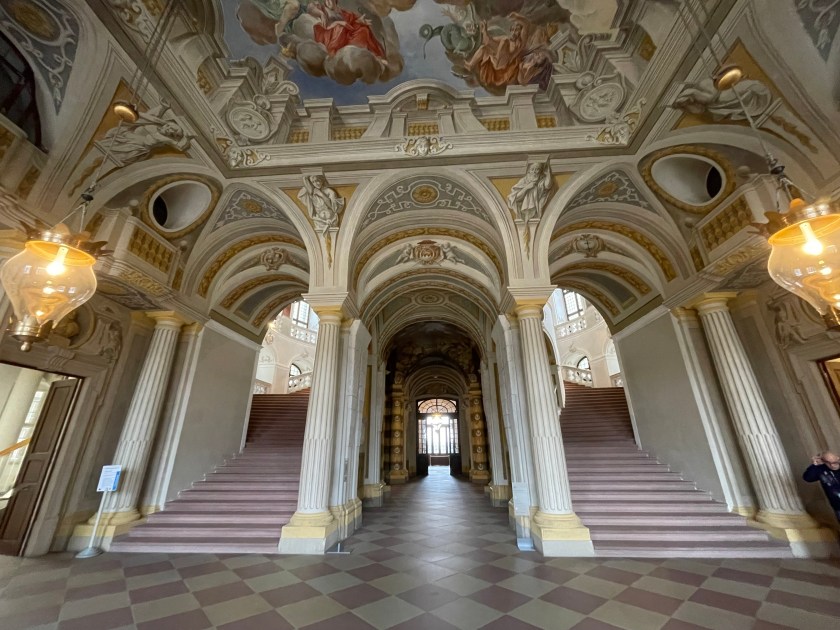 The castle/palace had 3 wings and a world-famous huge central staircase much like the one in Würzburg.