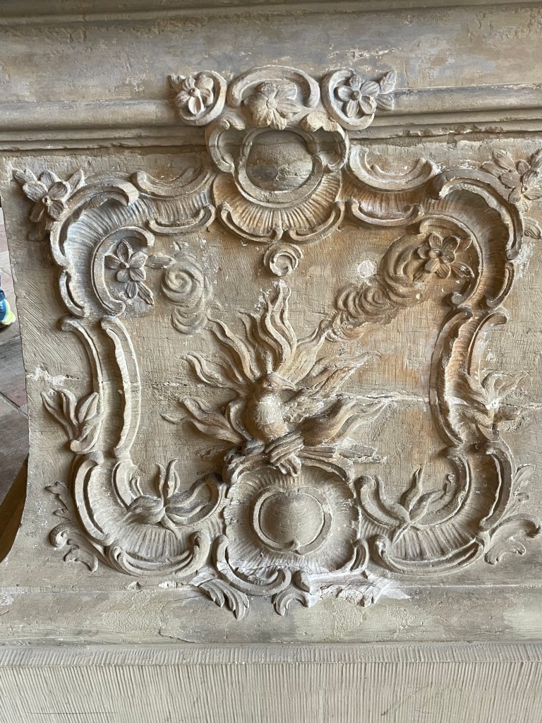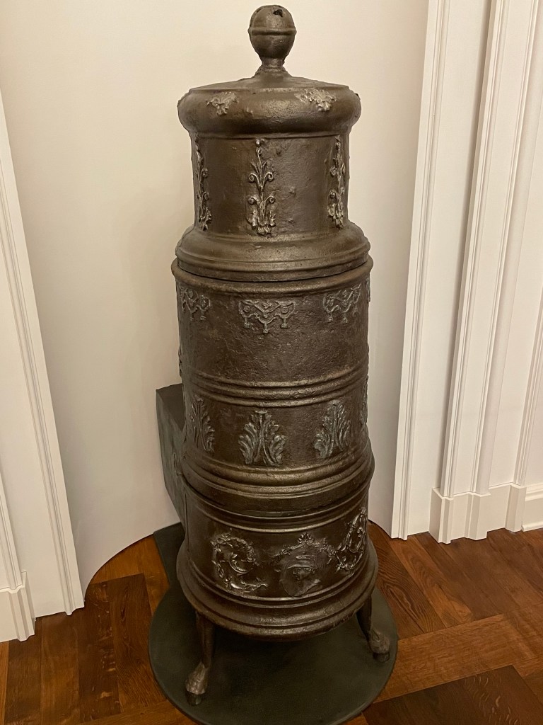 These stoves, for heat, were loaded from passages for the servants behind the walls. The saying, “Her ears were burning,” comes from the idea of trying to listen to gossip through these walls while heating the rooms.