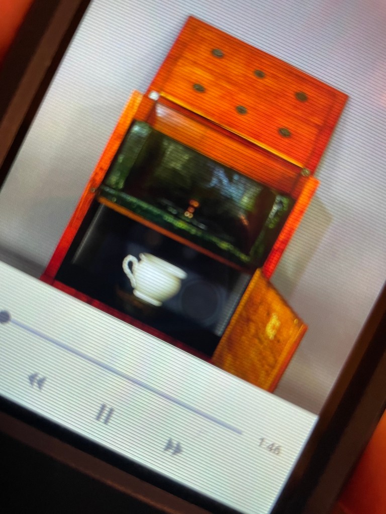 A poor screenshot of from the tour on my phone of what’s inside the dresser:
