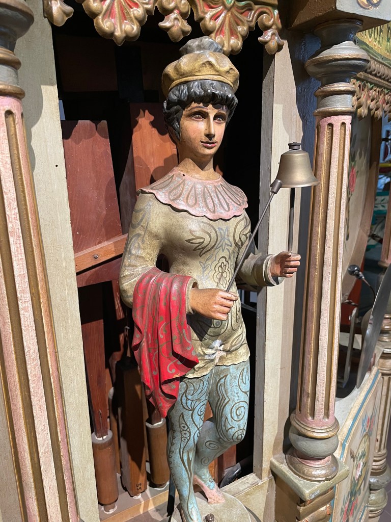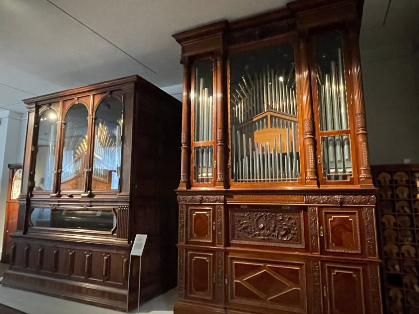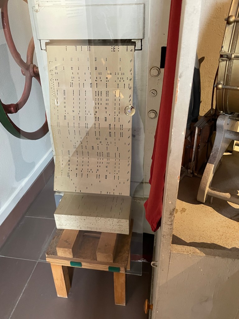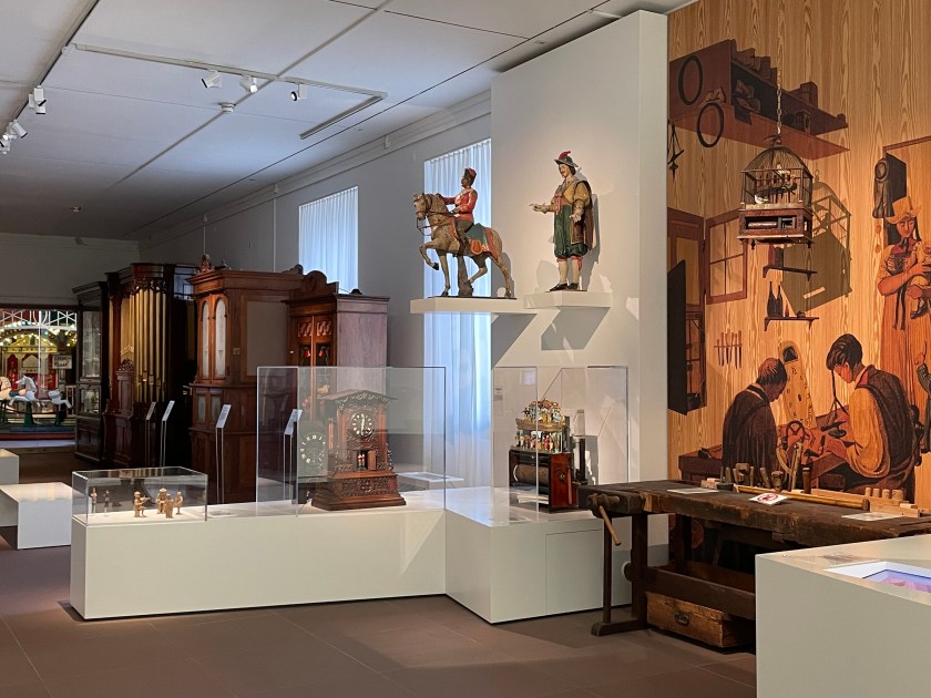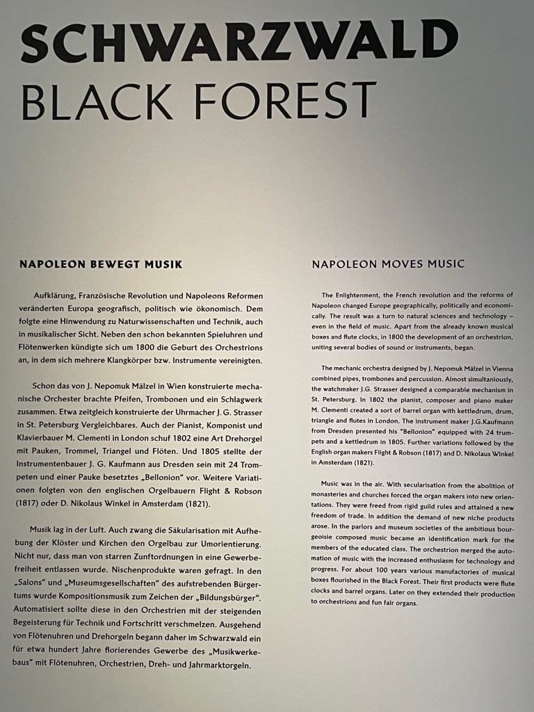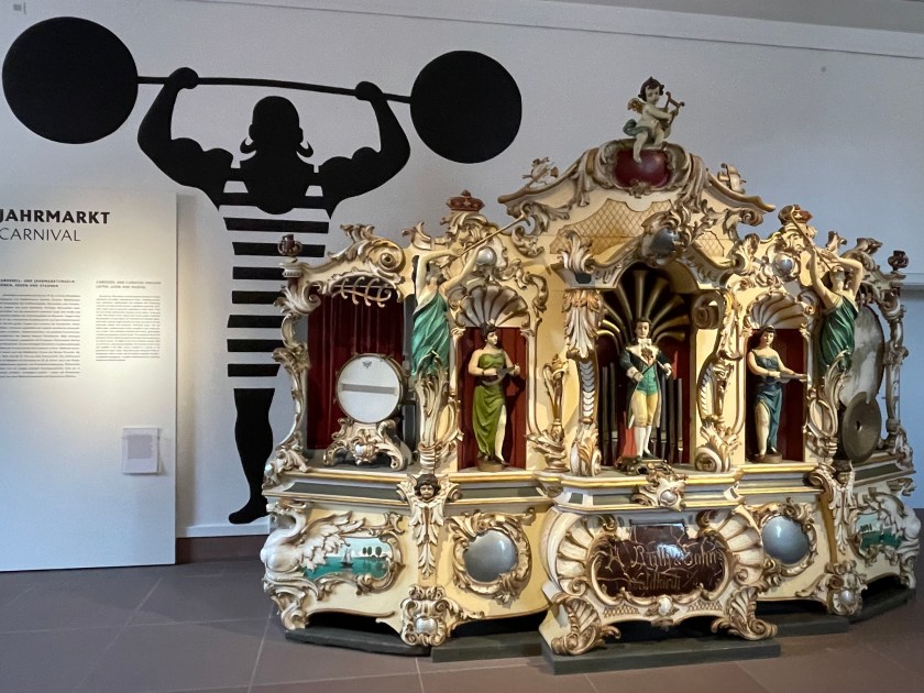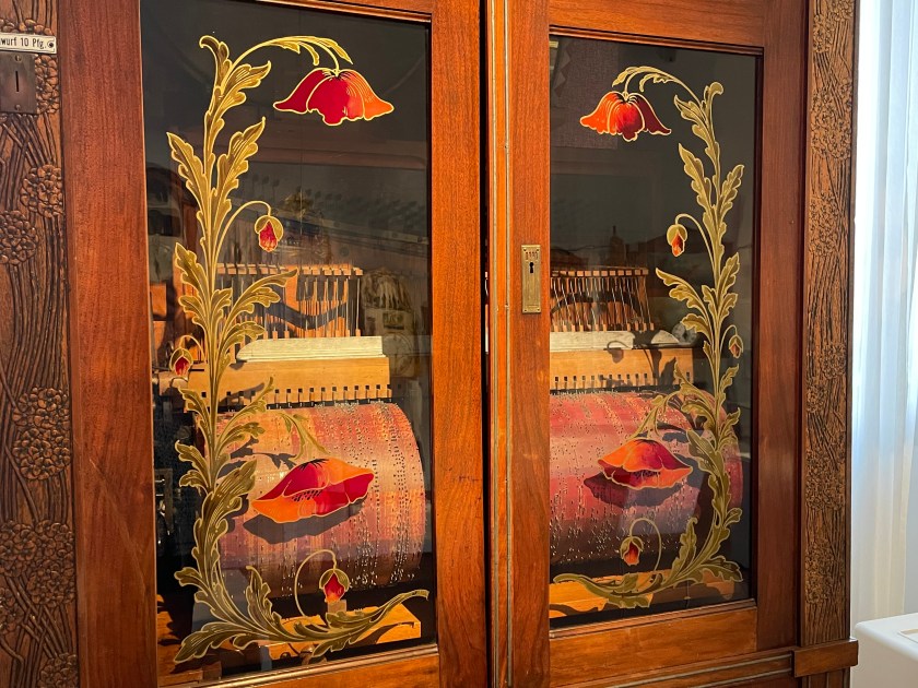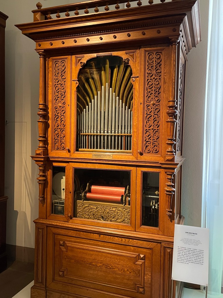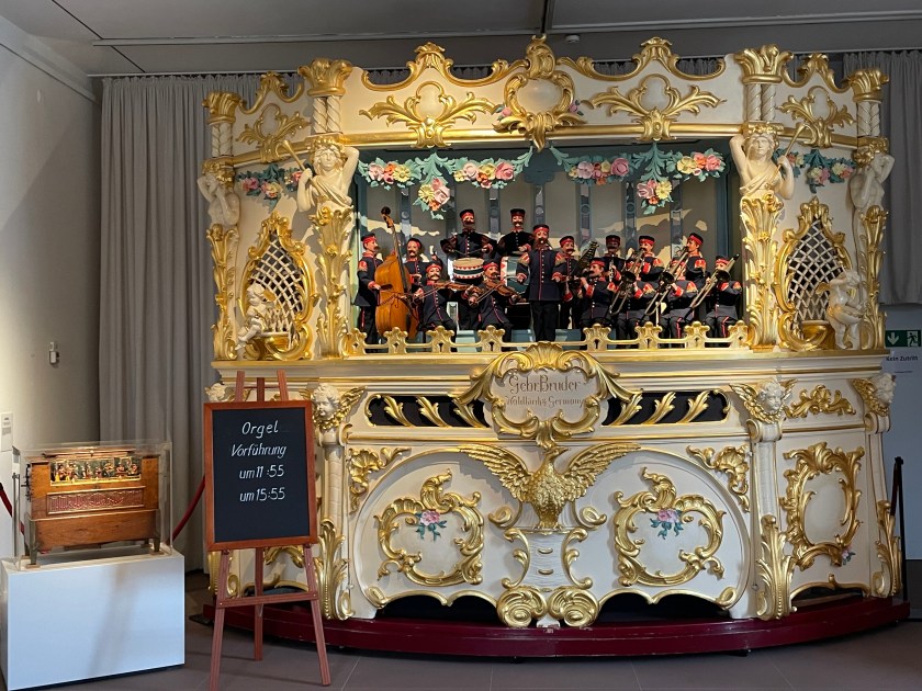 After touring Bruchsal Castle, we went to another small museum by the giftshop which was included in our tour–there were 2 rooms called the German Museum of Mechanical Musical Instruments. We walked through then in 15 minutes or so. It was really interesting. Before we left, a docent played one of the big organ music boxes for us. Incredible. It worked like a music box with a scroll of the music turning slowly as each note was played.