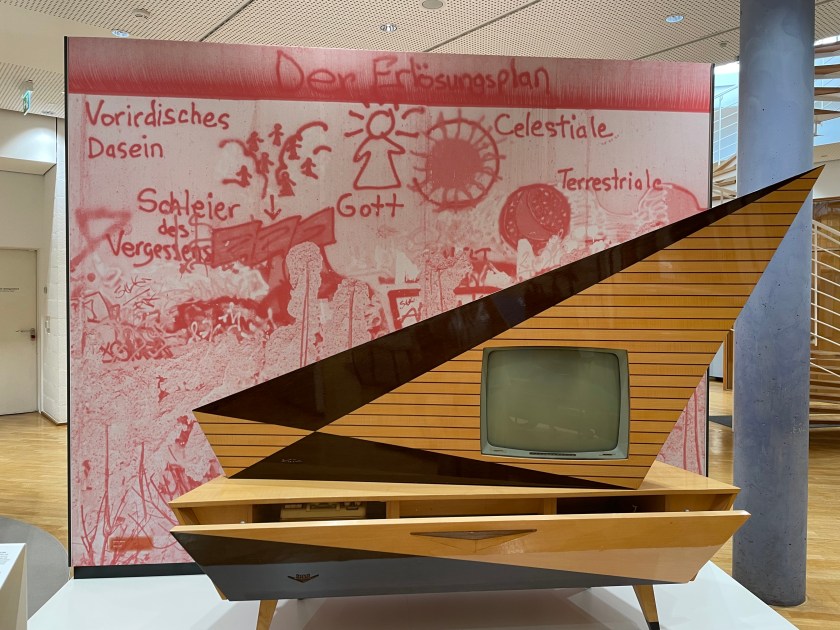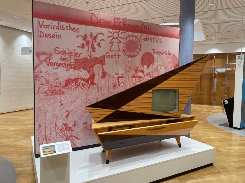 This TV display was our favorite! The museum folks picked a random section of the Berlin Wall to replicate here to give context to the period of this 1959/1960 TV. Do you see what I see?