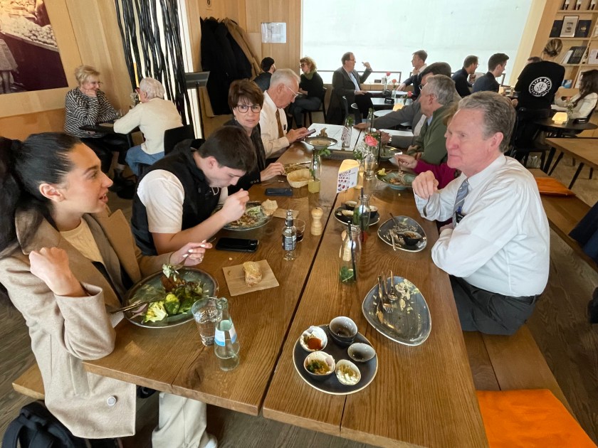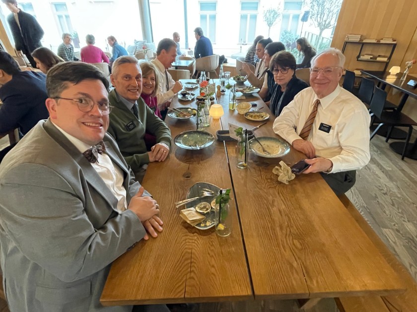 Today we went on a Communication Department fieldtrip. Each semester our new BYU intern is taken here, and this time we missionaries went along. We took the train to downtown Frankfurt and had a nice lunch together at the Jewish Museum café.