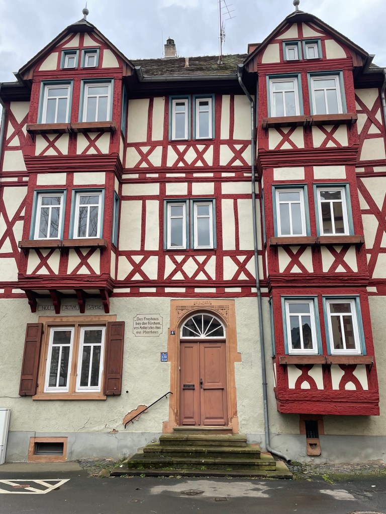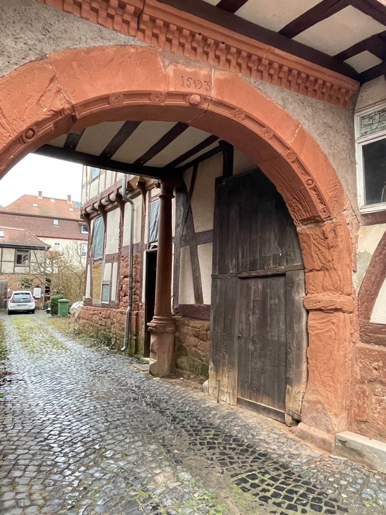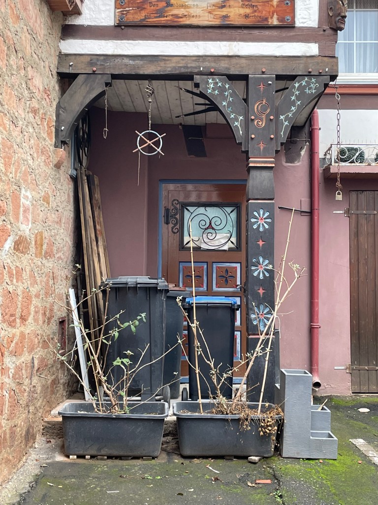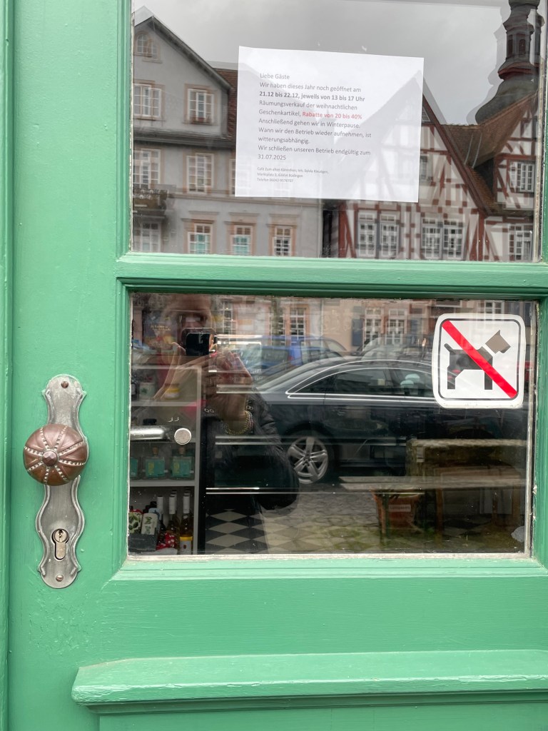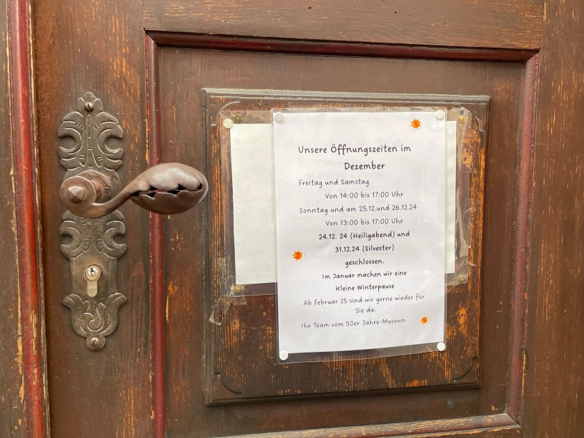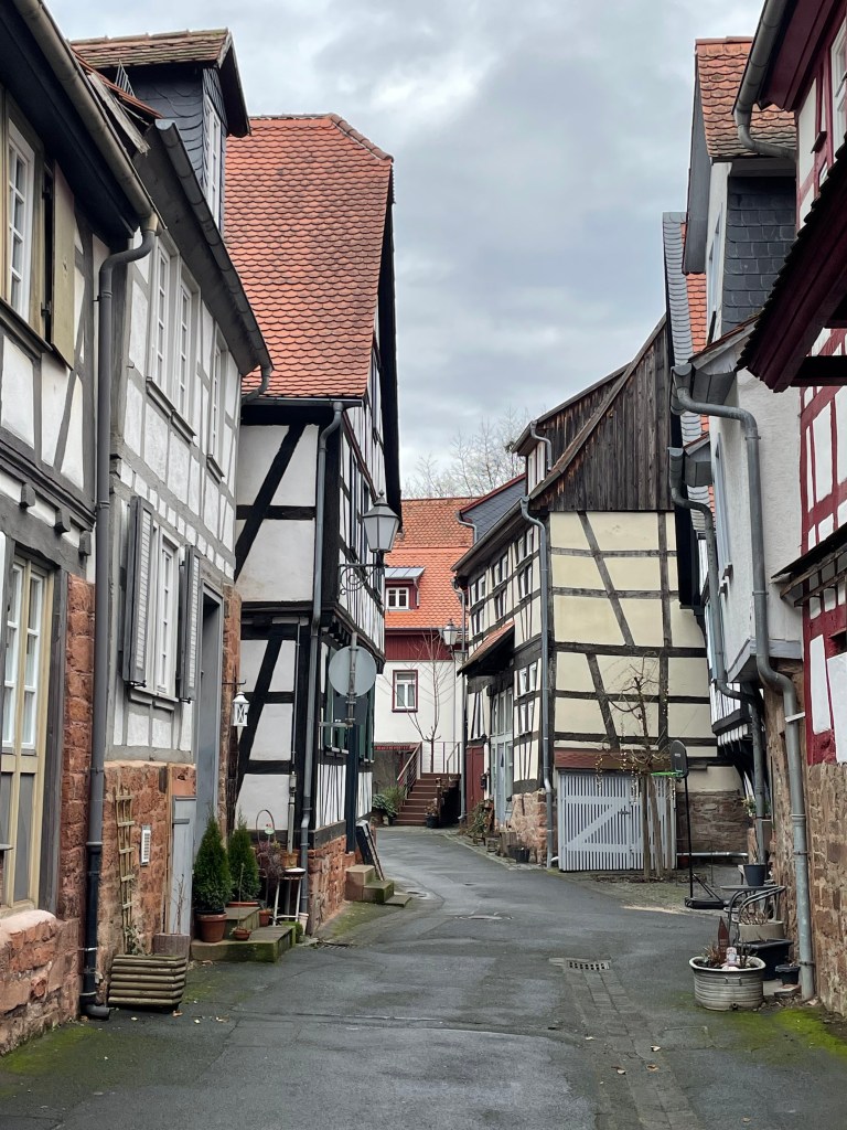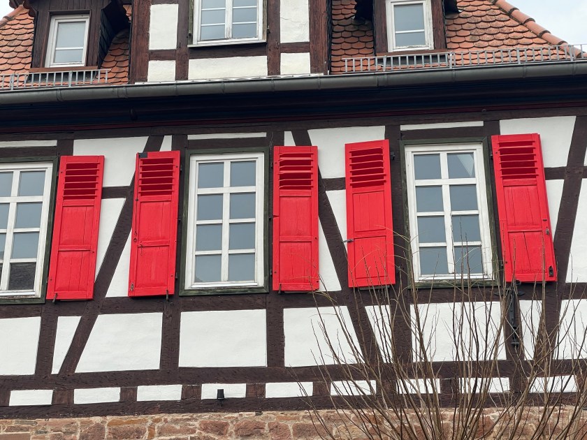 There are several small museums in town–a butcher’s museum, a 1950s museum, a town museum and more. All were closed. Almost every shop in the Altstadt was closed too. It seems the town is on “Winter Pause” after the busy Christmas market times. It sounds like many towns’ shops close down during Jan and Feb, opening back up the 2nd week in March. Today Büdingen felt really deserted.