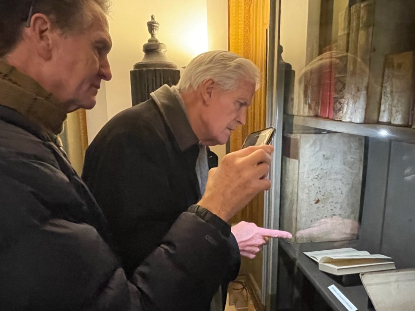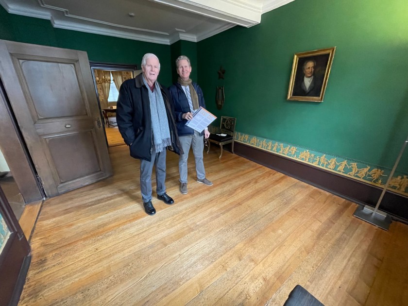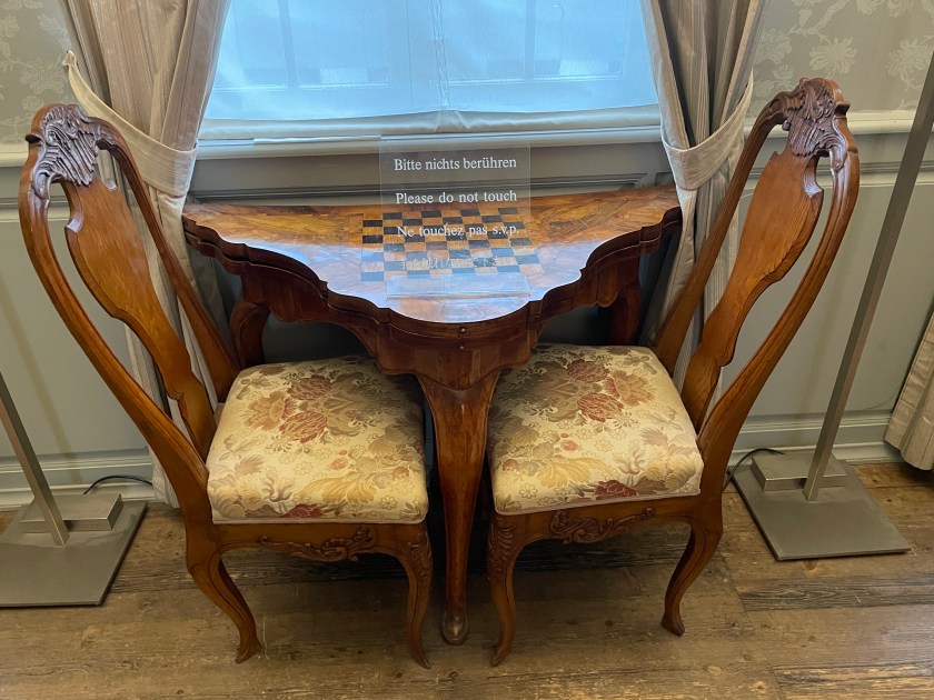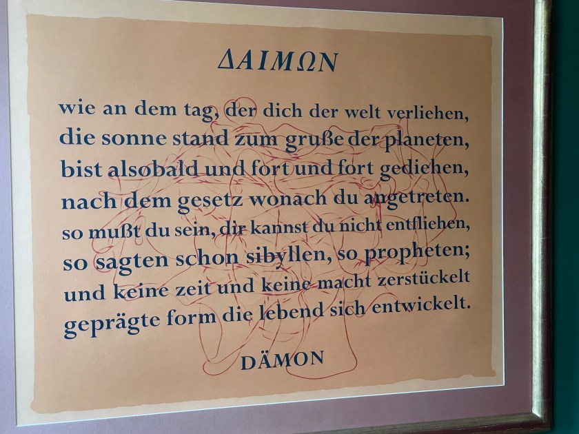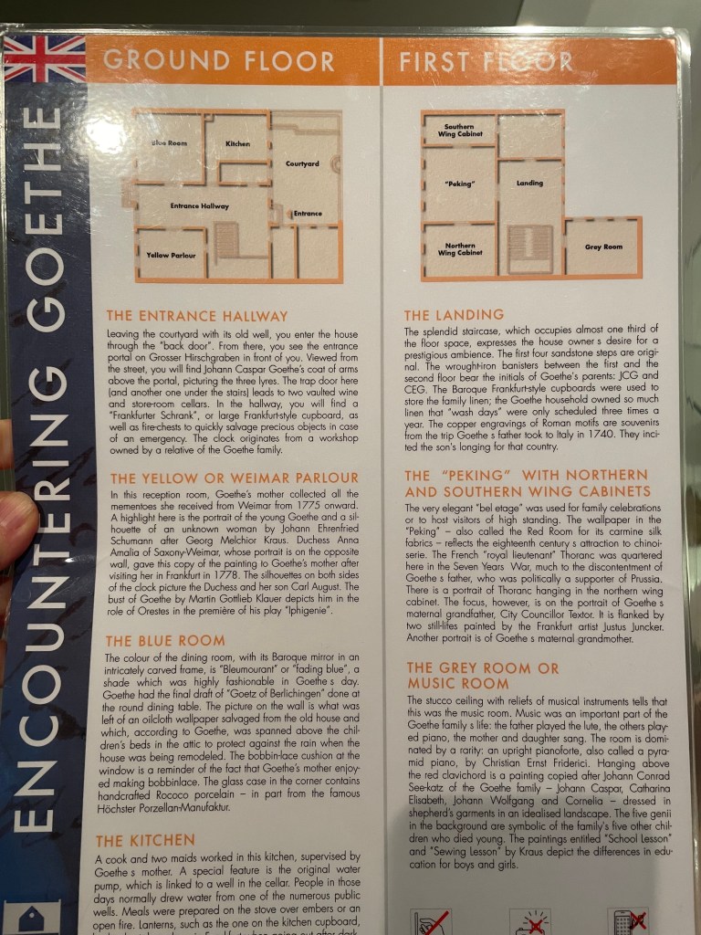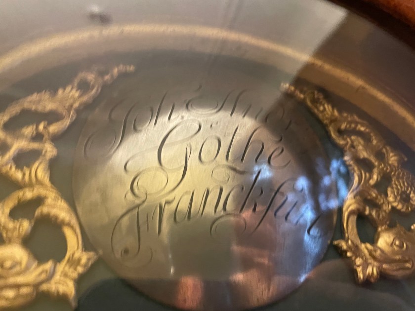 We decided to take Alan to the Goethe Haus in downtown Frankfurt and that turned out to be the best thing ever for him–he got his PhD in German Literature and having him with us was like having our own personal Goethe scholar along as we walked through the 4 stories of the house where Goethe was born and grew up. Alan was thrilled to be there and really enjoyed it. We spent 2-3 hours there, inspecting everything, room by room as Alan quoted Goethe to us in both English and German.
