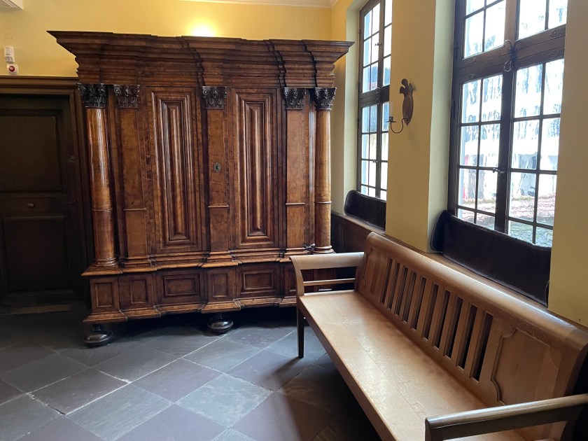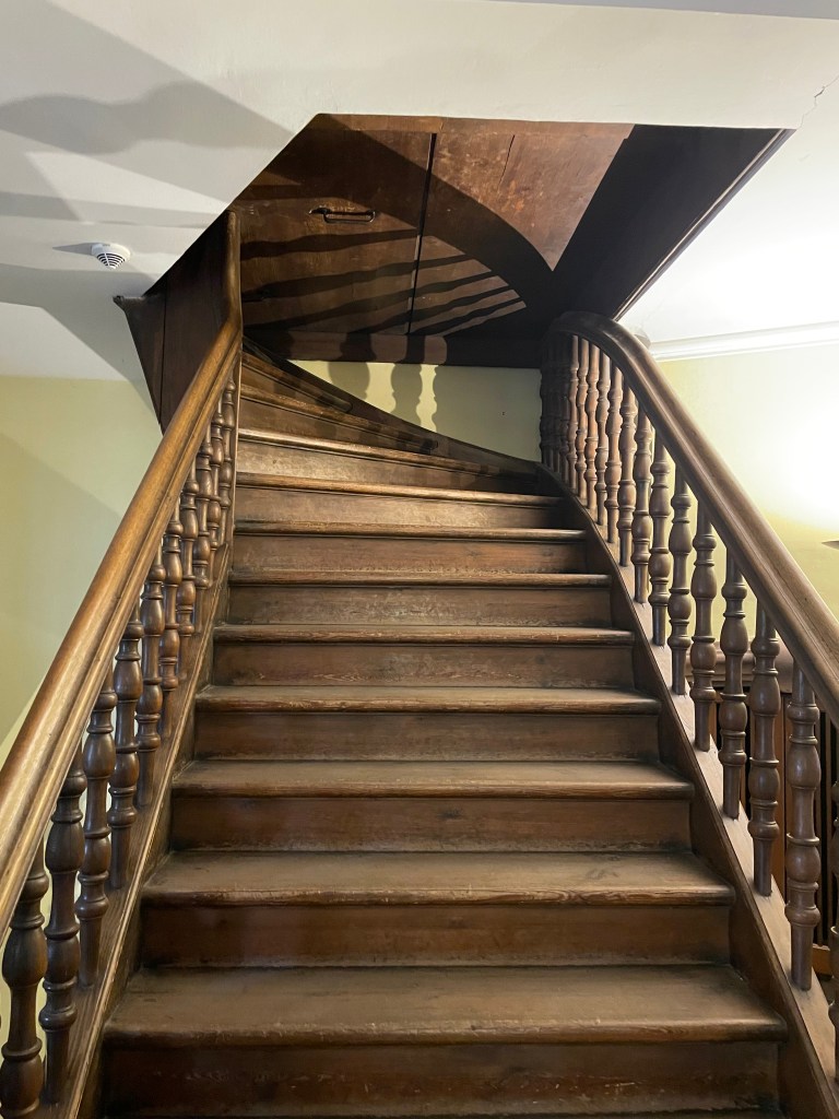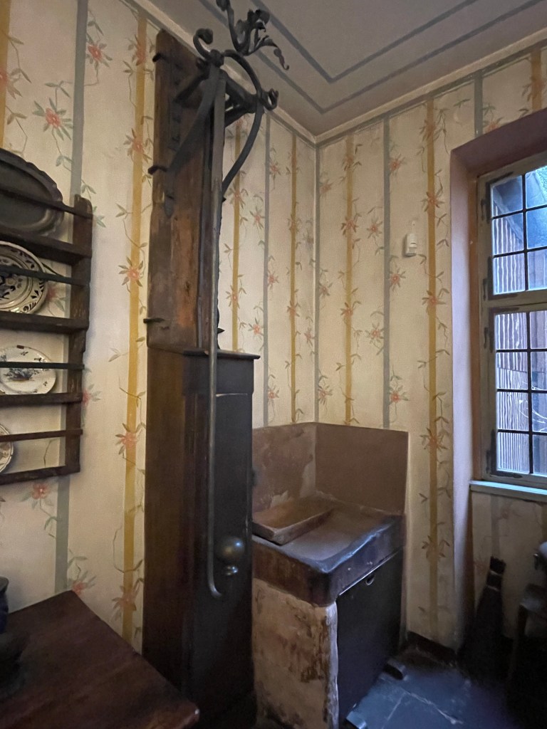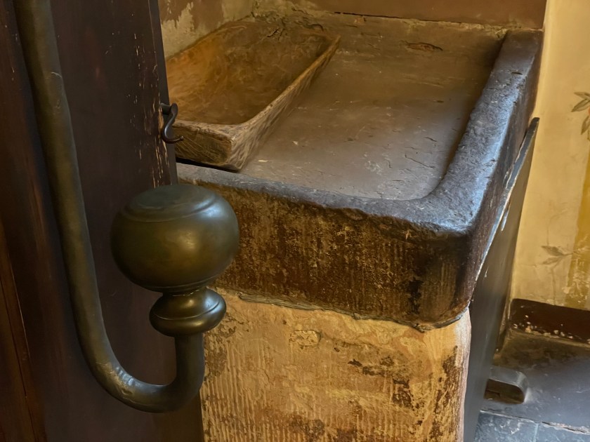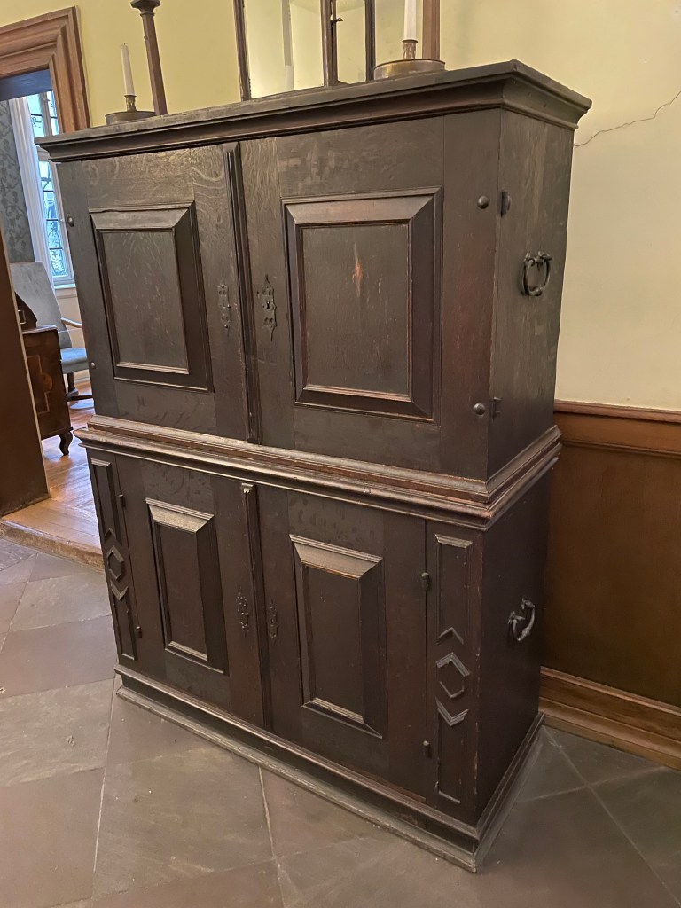 This was interesting. These are “fire chests” kept in the entry of a home to store important objects or documents in case of an emergency. If a fire broke out, they were near the front door and equipped with handles for strong men to carry them out of danger’s way. Not exactly “grab and go,” but the same idea!