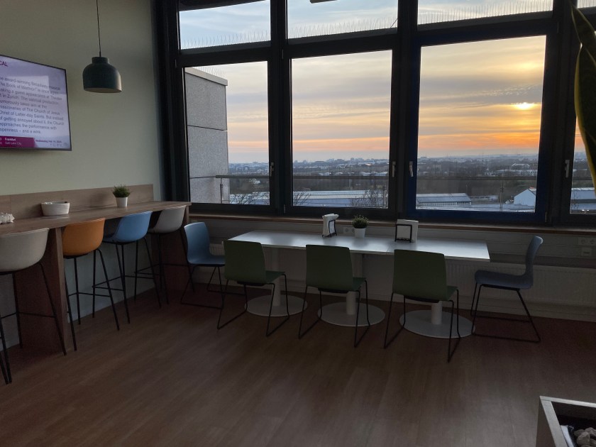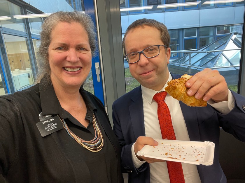 Today we had a large department (CCD and PSD) weekly devotional with a breakfast potluck/farewell for the two of us. Here we are at the end, finishing up.
