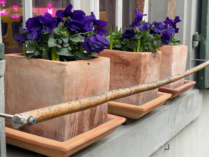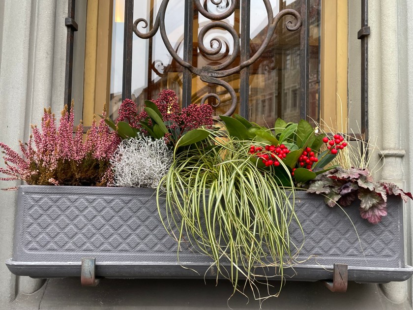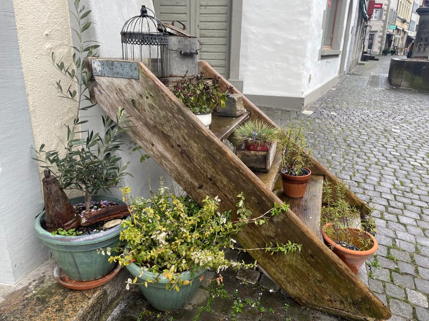 There are so many old things here. I love the doors and the hardware. I love the windows and shutters. I love the flower boxes, now beginning to come alive with Primroses and Pansies. I love it all so much. I do not tire of these interesting old towns.