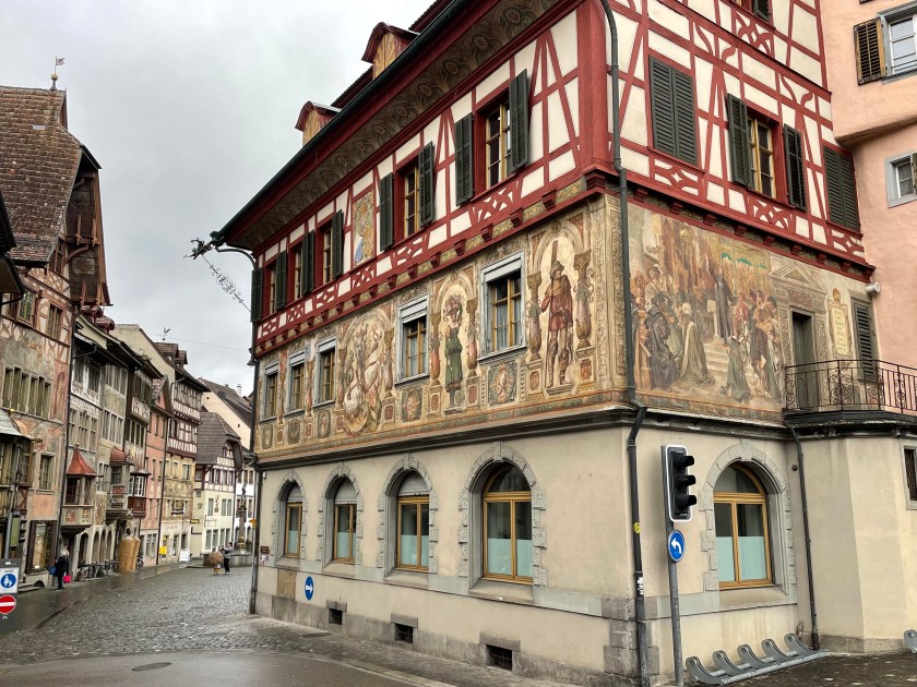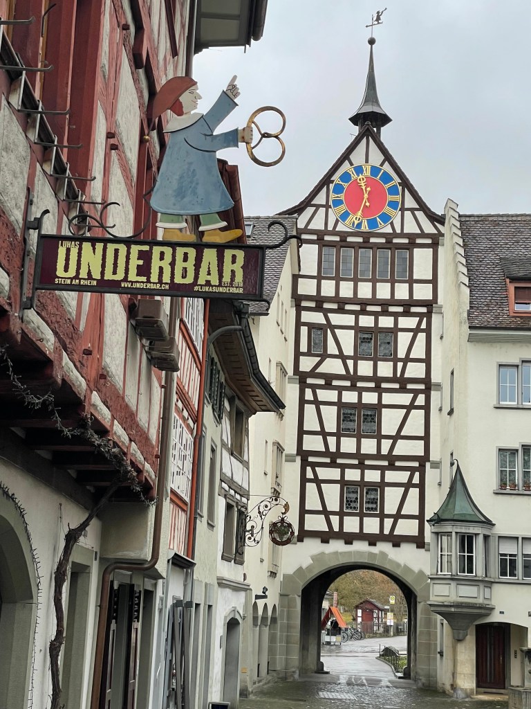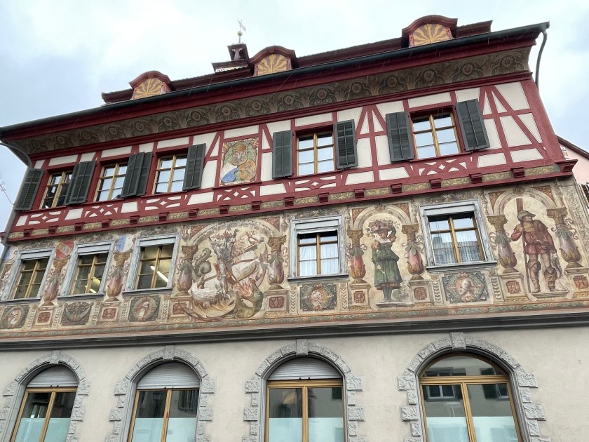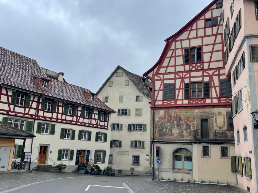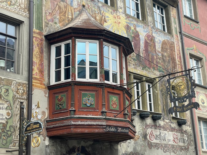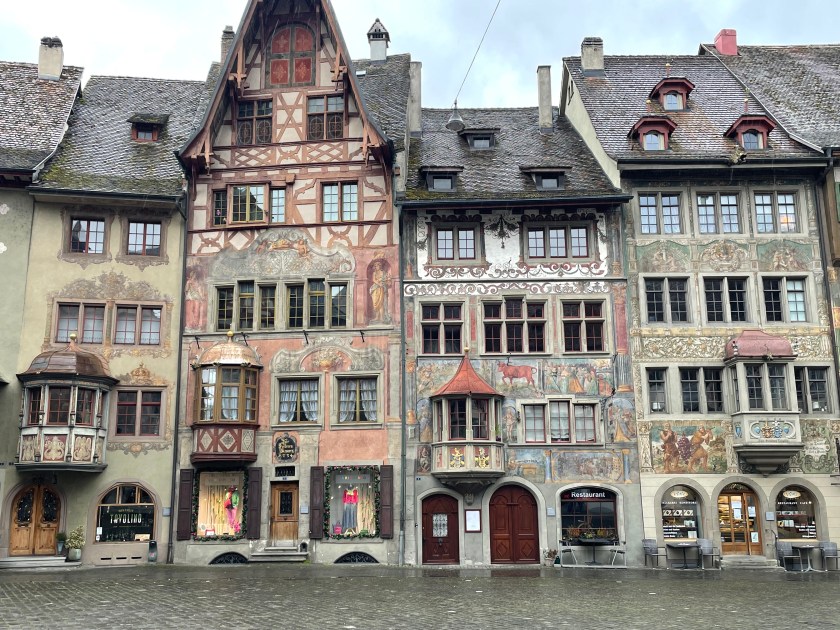 Our first destination today (driving back through Wintertür) was a town called Stein am Rhein (stone on the Rhine), about an hour from Baden. John remembered hearing it was a nice place to visit and we LOVED it. We got there at about 11:00.
