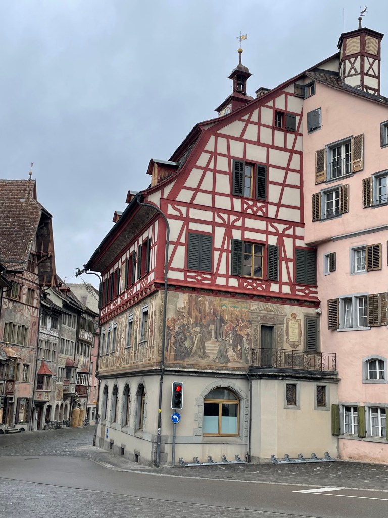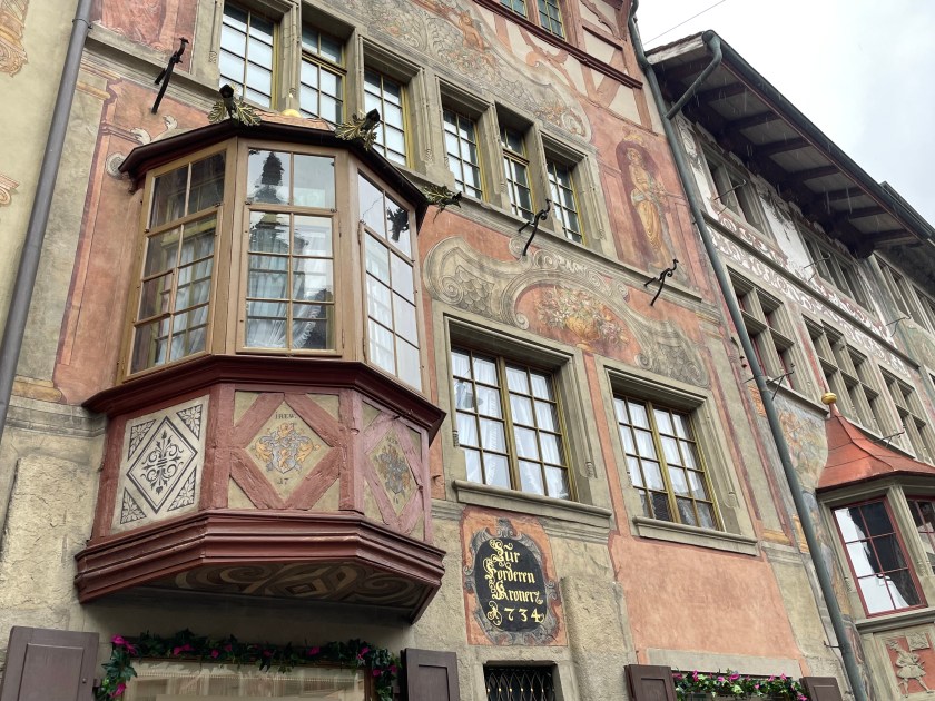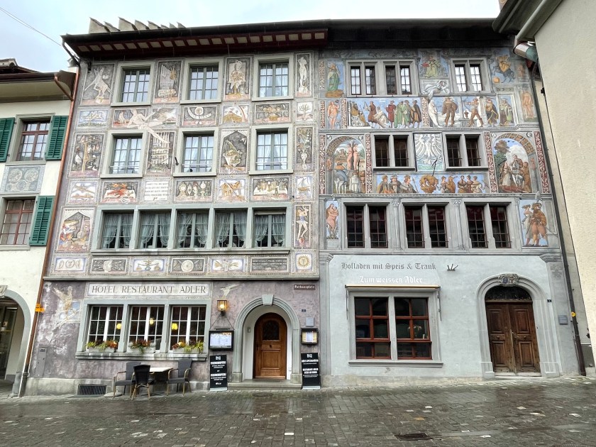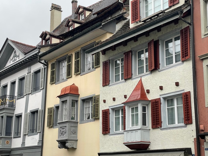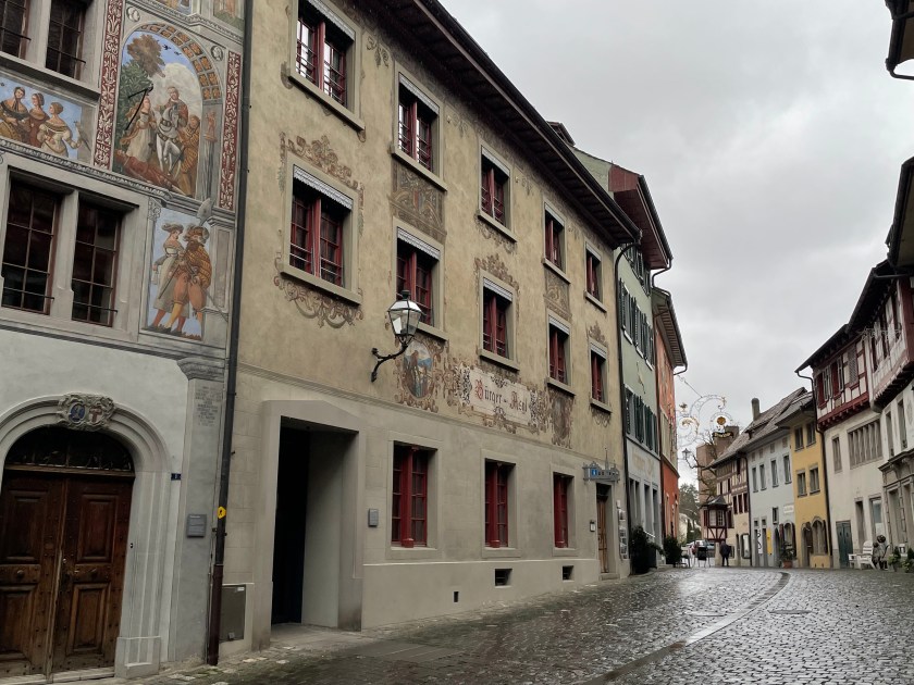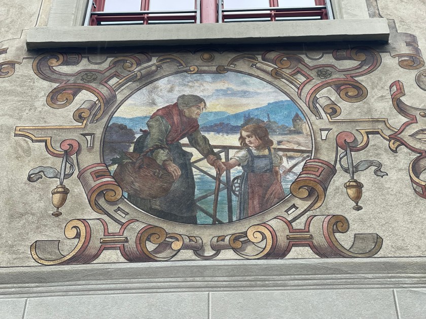 Our first destination today (driving back through Wintertür) was a town called Stein am Rhein (stone on the Rhine), about an hour from Baden. John remembered hearing it was a nice place to visit and we LOVED it. We got there at about 11:00.