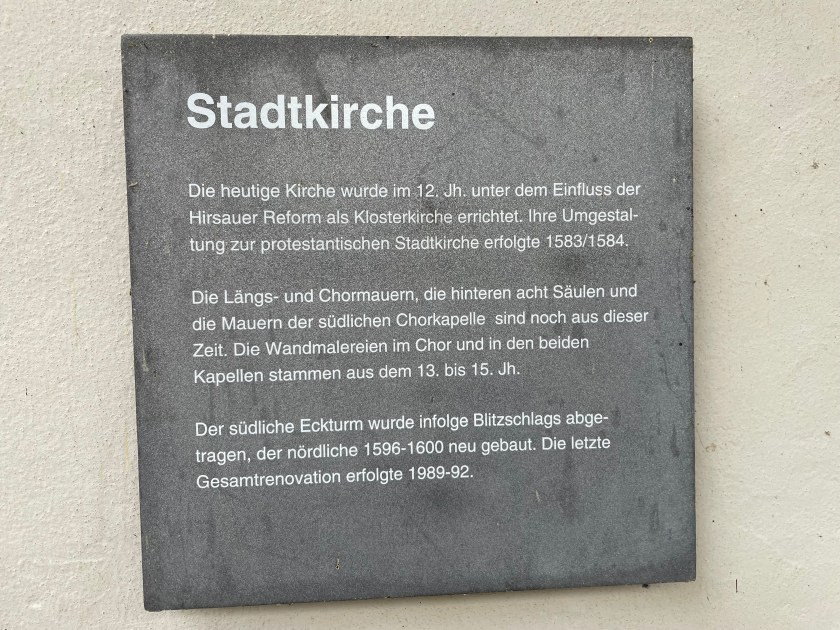This city church was built as a monastery church in the 12th century. It was converted into a Protestant city church in 1583/1584. The walls and columns date from this period. The wall paintings in the choir and in both chapels date from the 13th to the 15th centuries. The southern corner tower was destroyed by lightening and rebuilt from 1596-1560. The last renovation was in 1989-92.