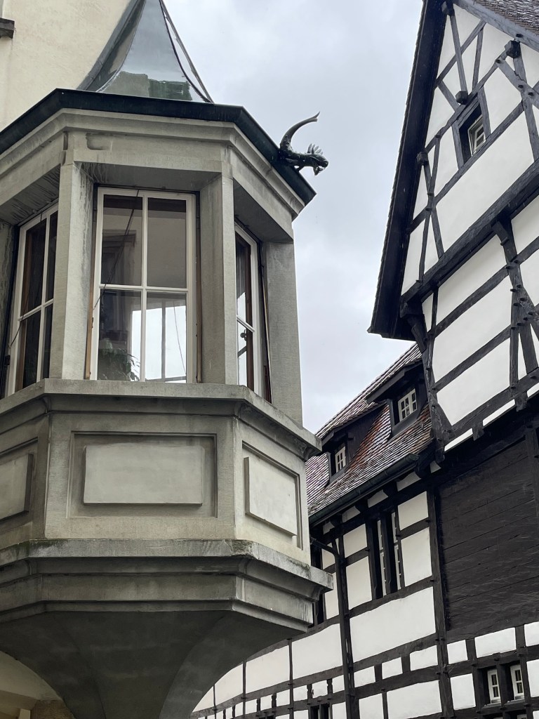 There was a beautiful old church and St George’s Abbey with a museum (closed). Things are closed this time of year. It’s like time off for the shopkeepers until March or April. No tourists come in the cold after the Christmas months. I think this town is a big tourist destination in the summer time. It was beautiful. The buildings were beautiful. The murals and half-timber homes/shops were beautiful. It’s almost too much to take in. My words can’t capture it.