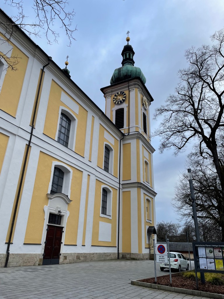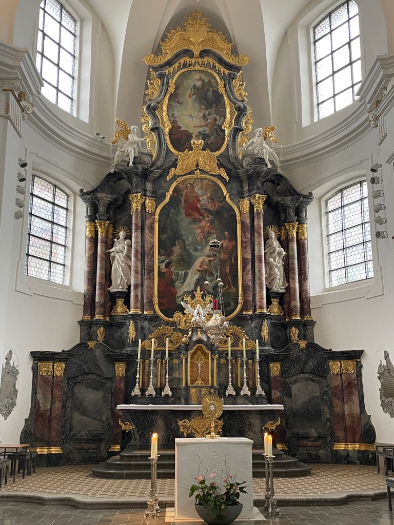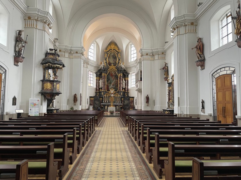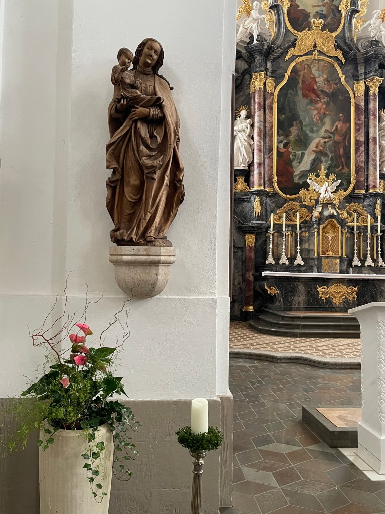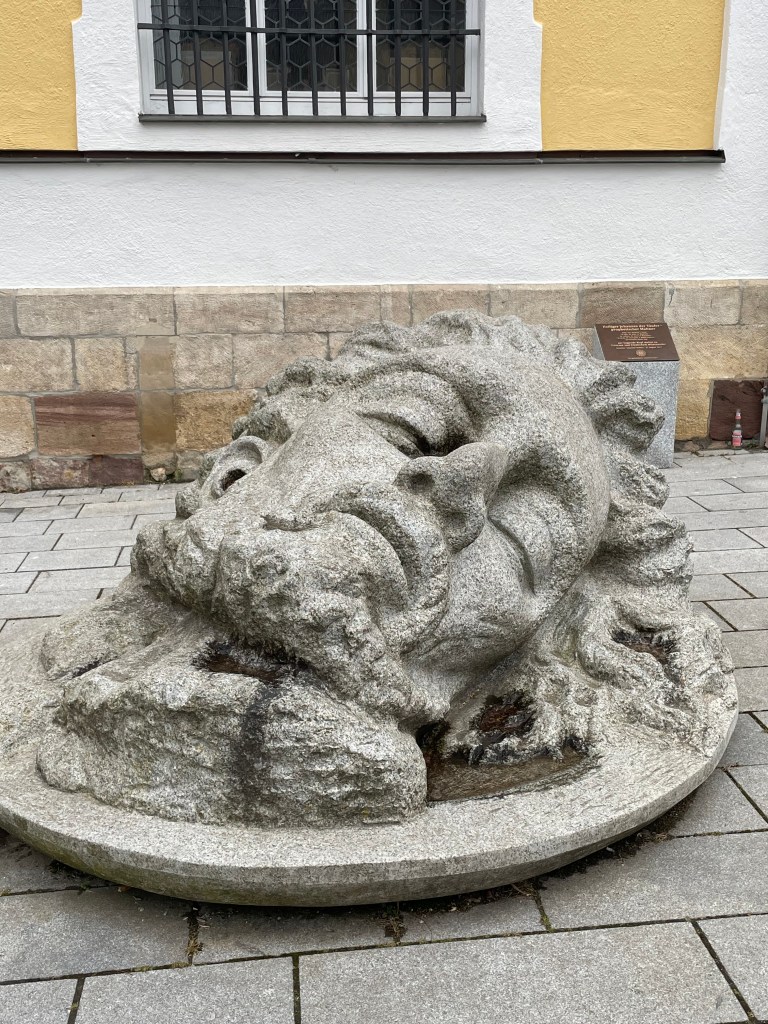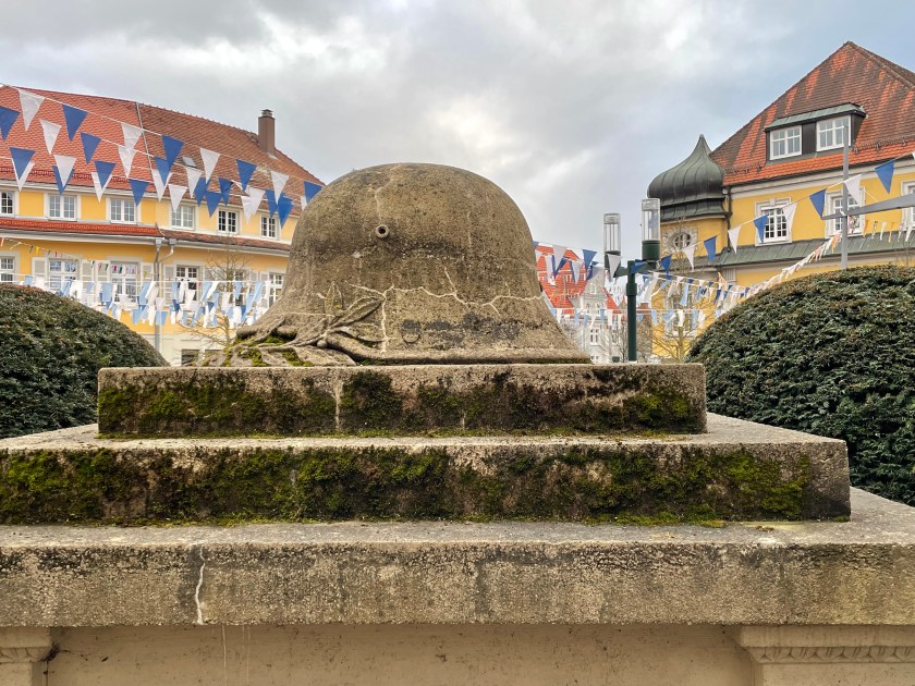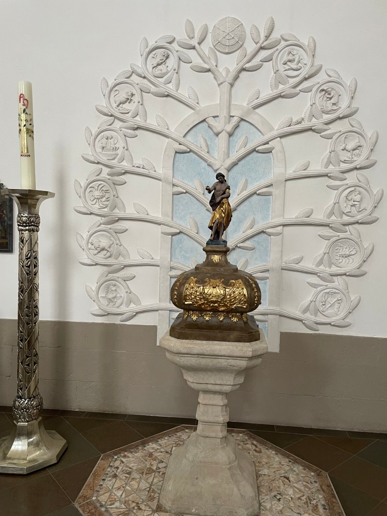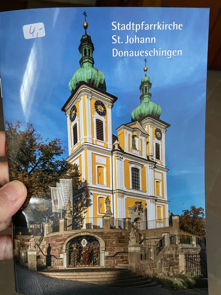 There was a big yellow onion-spired church (St. Johann) named after John the Baptist, near the Quelle (source) of the river. There was a sculpture of the Baptist’s head out front.