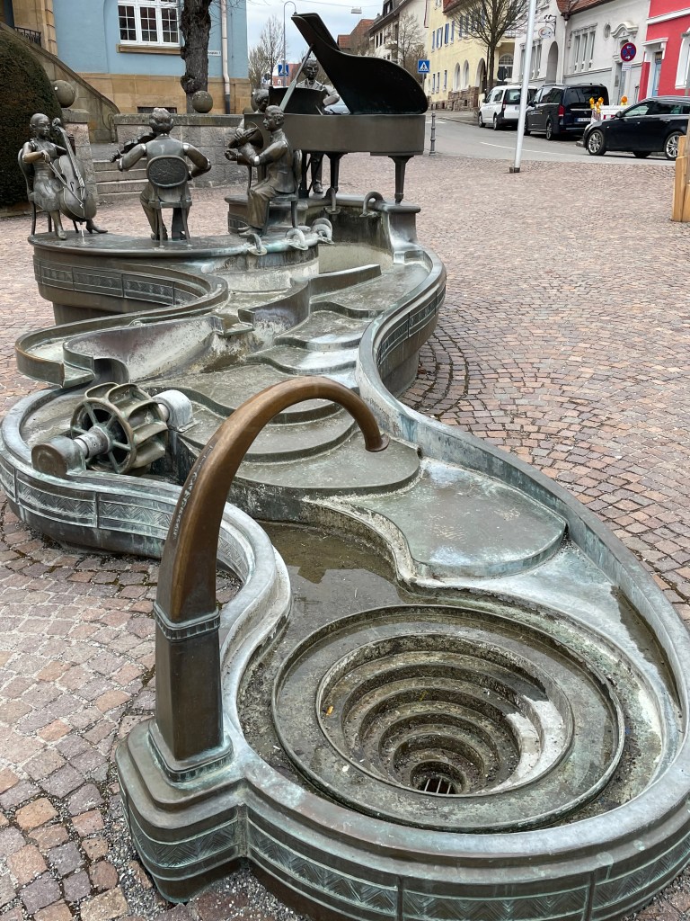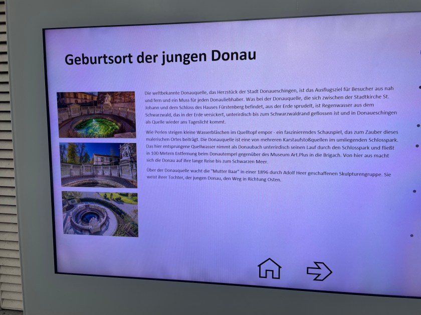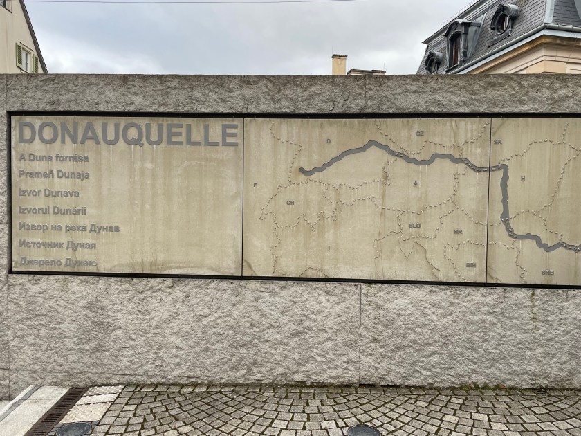 We drove from Dettingen through more small towns and more (now German) countryside to Donaueschingen. This was another town John selected to visit today. It known as being the source of the Donaubach in (historically considered the source of the Danube).