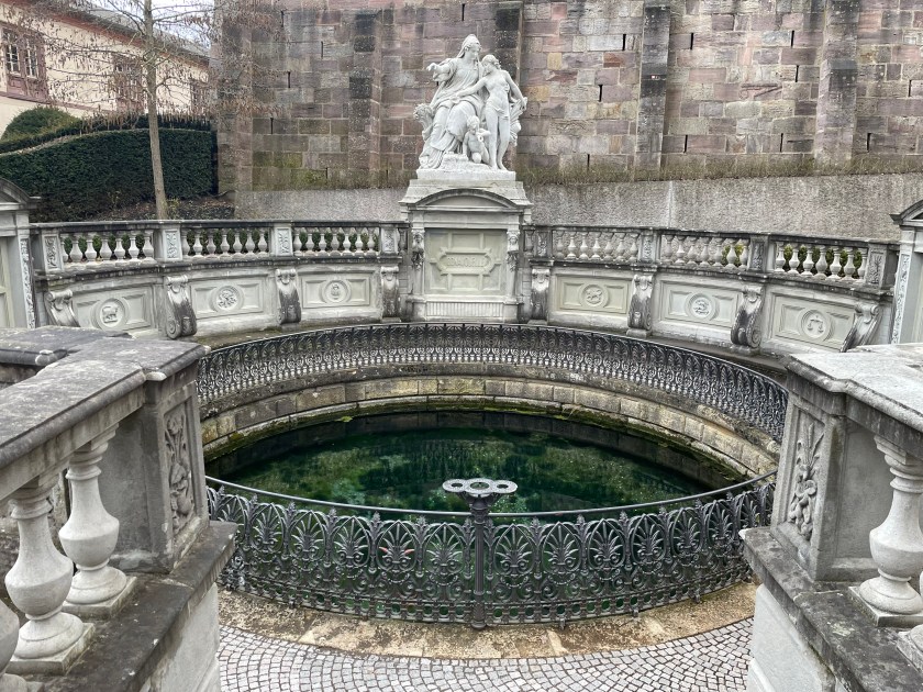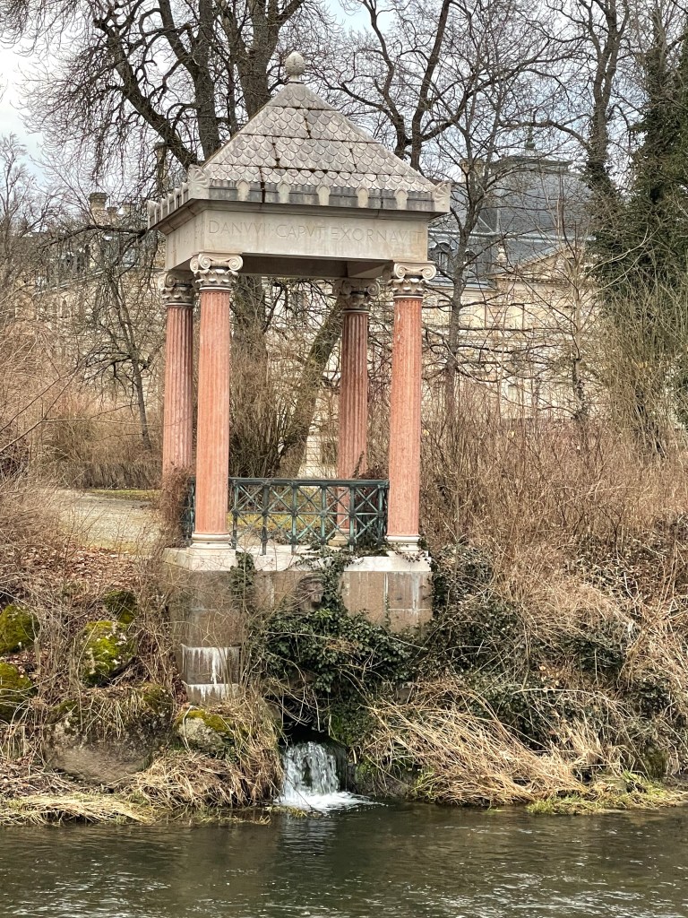 Outside, we went down several flights of stairs to the Quelle where the water was bubbling up from the ground. There are several underground springs that come up and they consider these the origin of the Danube River.