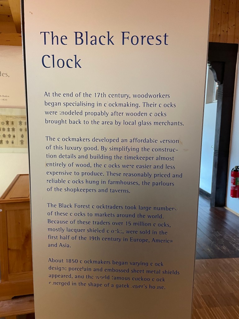 “Because we are here in the strange/unusual part of the Black Forest where clock manufacturing is carried out in all homes.”