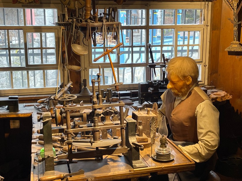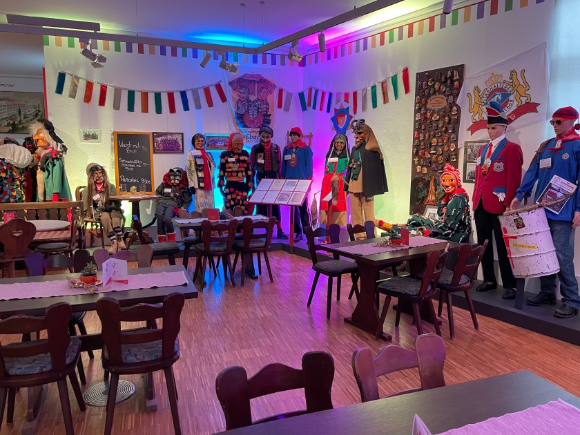 There was a beautiful collection of old clocks and beautiful carvings. There was a section that went down under the house made to look like you were in a gemstone mine. At the end of the tour was a restaurant/room all set up for Fastnacht partying. Around the room were historical Fastnacht costumes and mannequins with masks. It was all so fun and so interesting. We really enjoyed it.