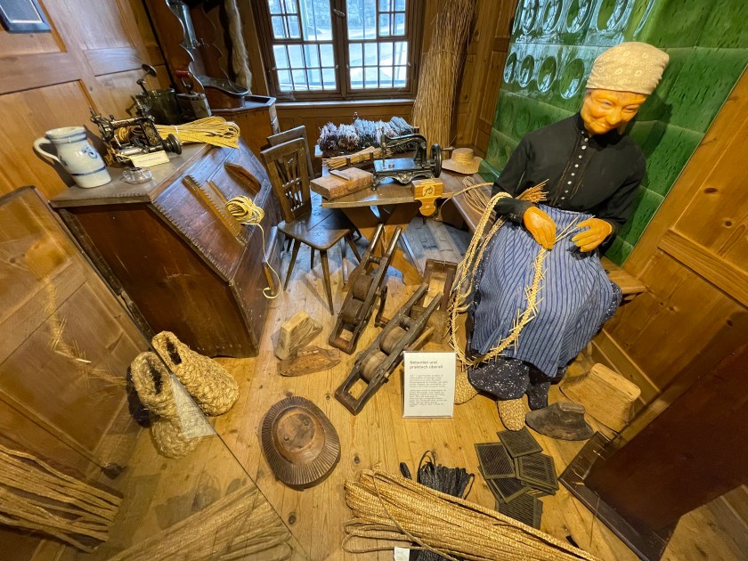 These next photos show the straw weaving industry from the Black Forest. Many of these home industries kept these mountain people busy during the cold and snowy winter months.