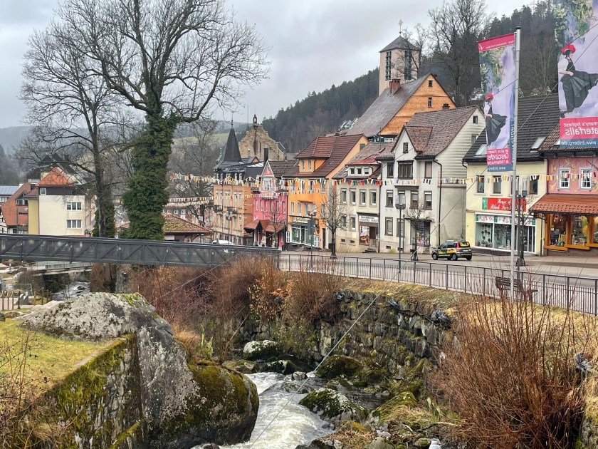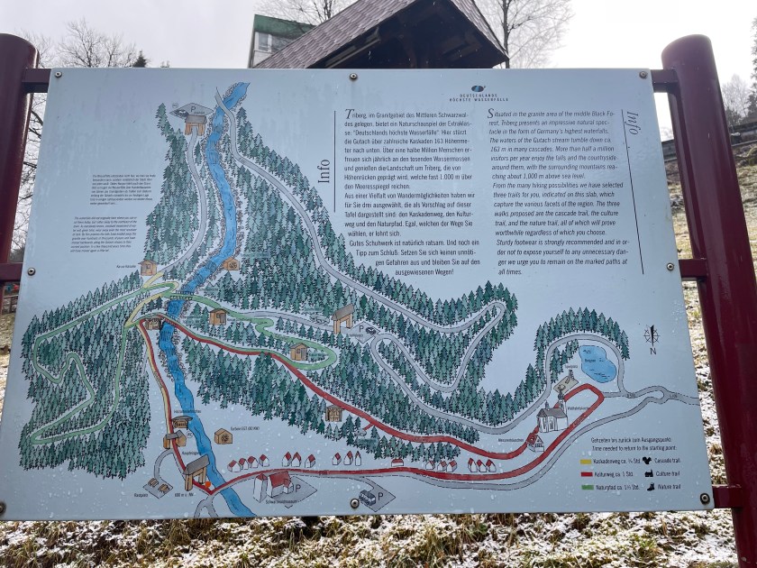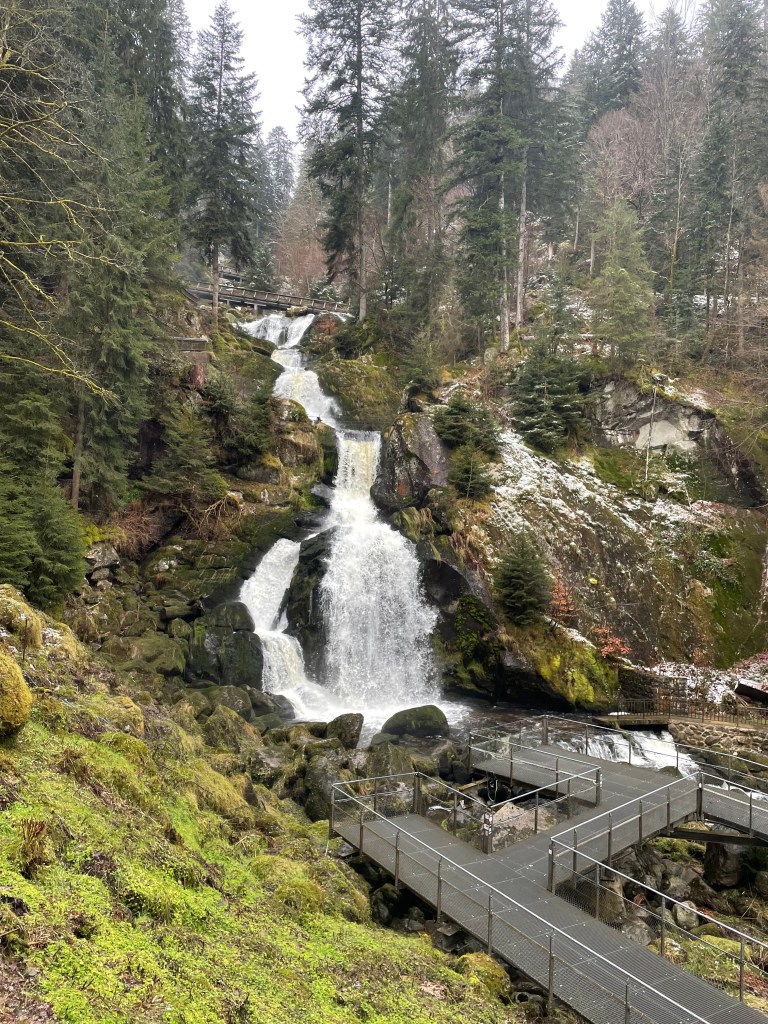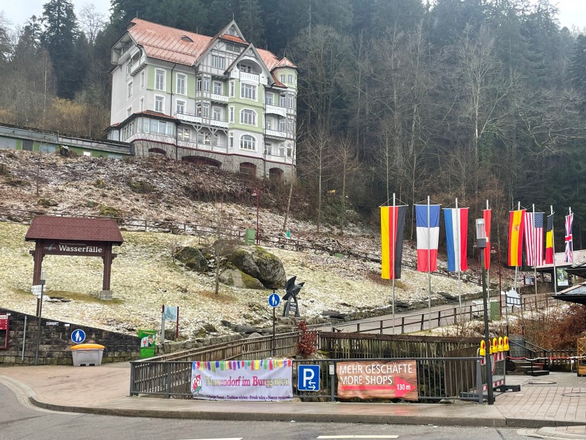 We had a pretty perfect day, beginning with a morning hike to the waterfall. Nothing in town opens until 11:00, so we went to the waterfall behind the restaurant we visited last night. We paid a few Euro to go to where the falls were, up the hill on a nice paved path. It was about a 15-20 minute walk up. They say this is the tallest/longest waterfall in Germany. The water flows, crashing down over the rocks, and all the way down the valley through the town. It was something fun to do.