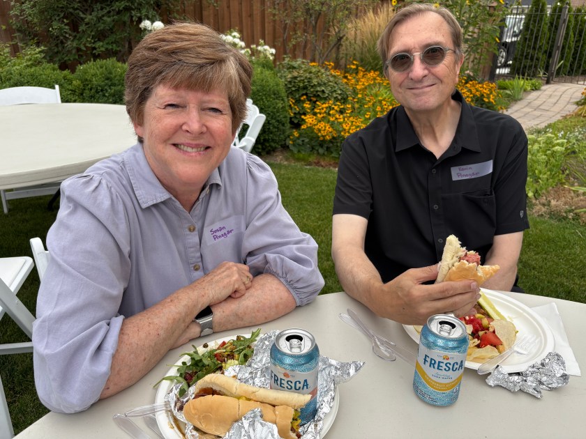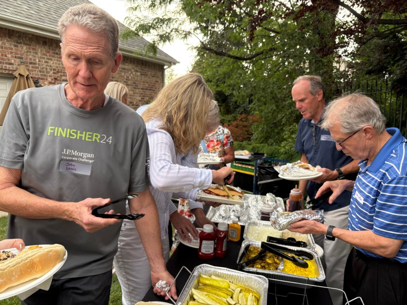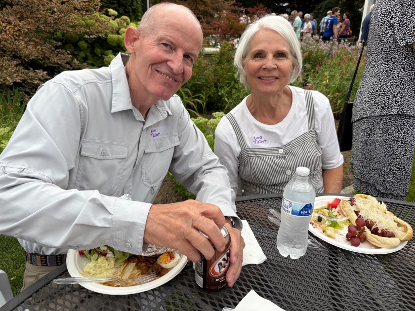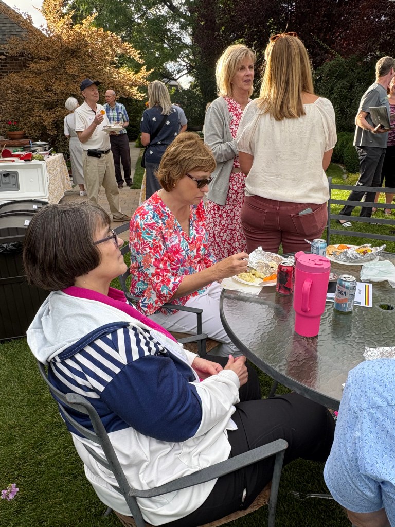 Thanks to the Garbers for their help planning, and to all who came and participated. The food was delicious, featuring J-Dawgs, grilled here in the yard and sides, salads and desserts brought by all who attended.