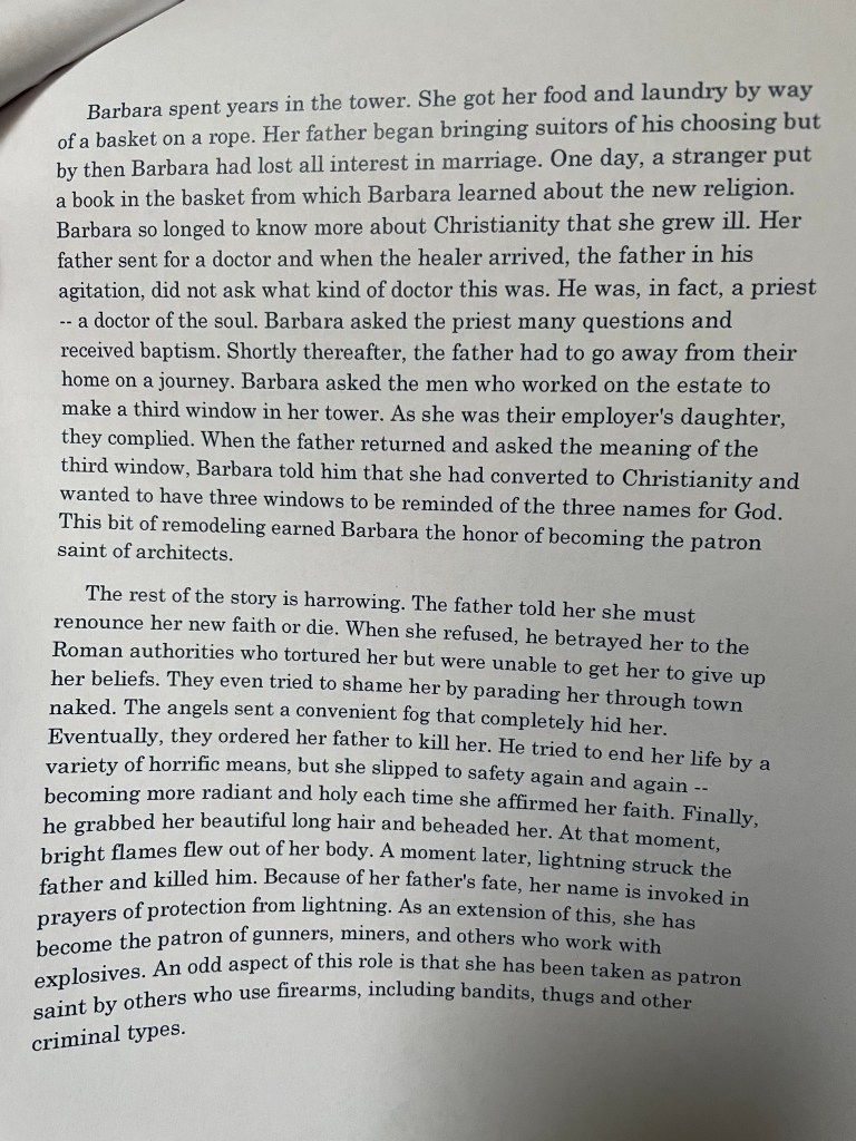 We also learned about Saint Barbara, who is celebrated on the 4th of December. Here is her interesting and tragic story: