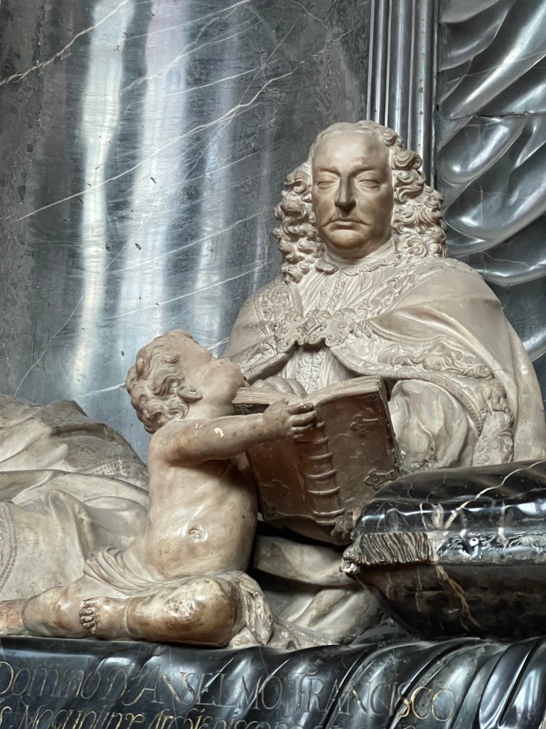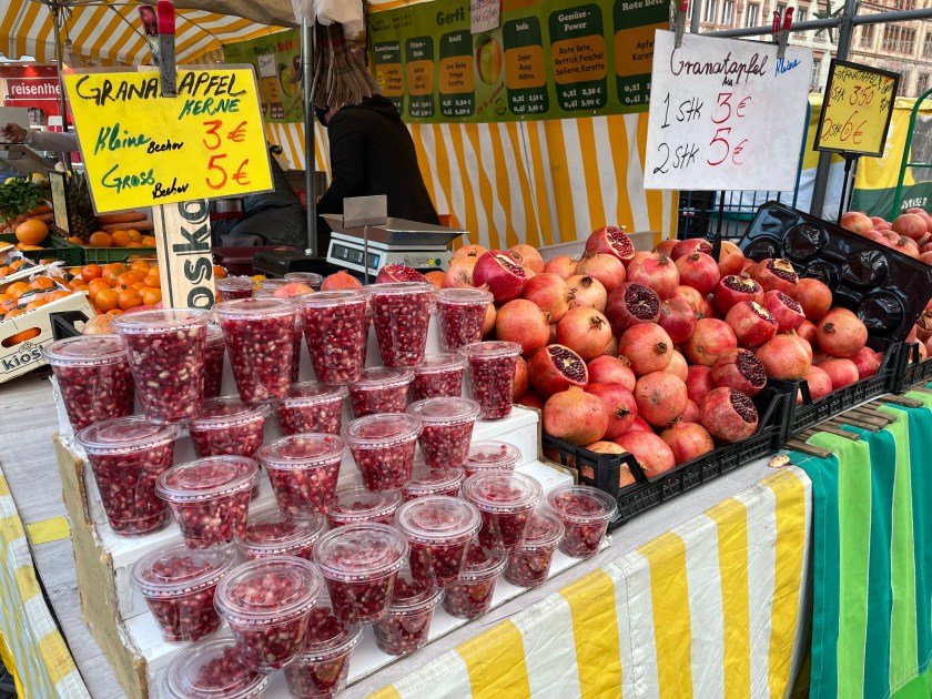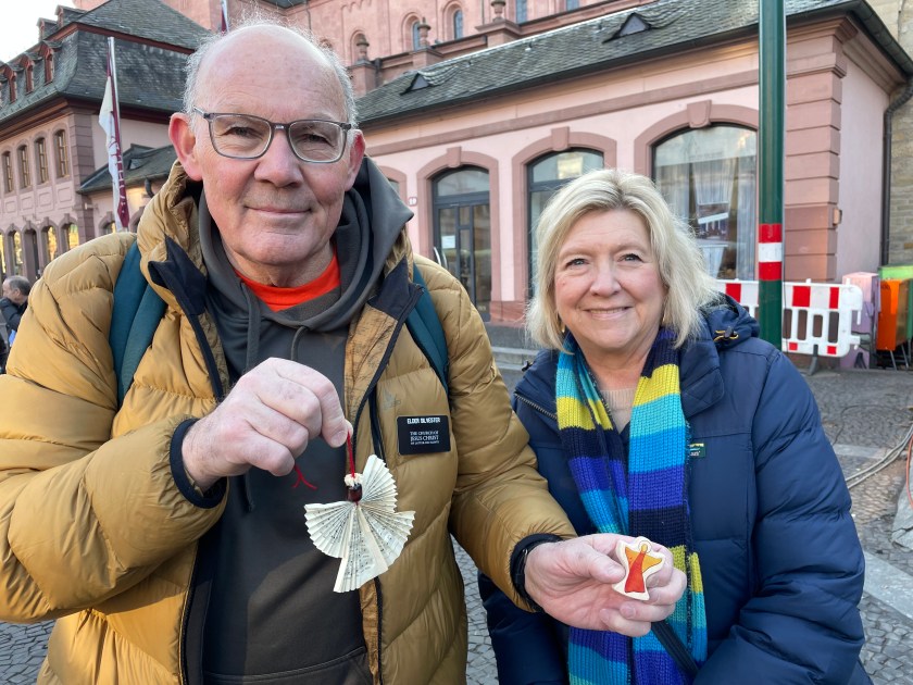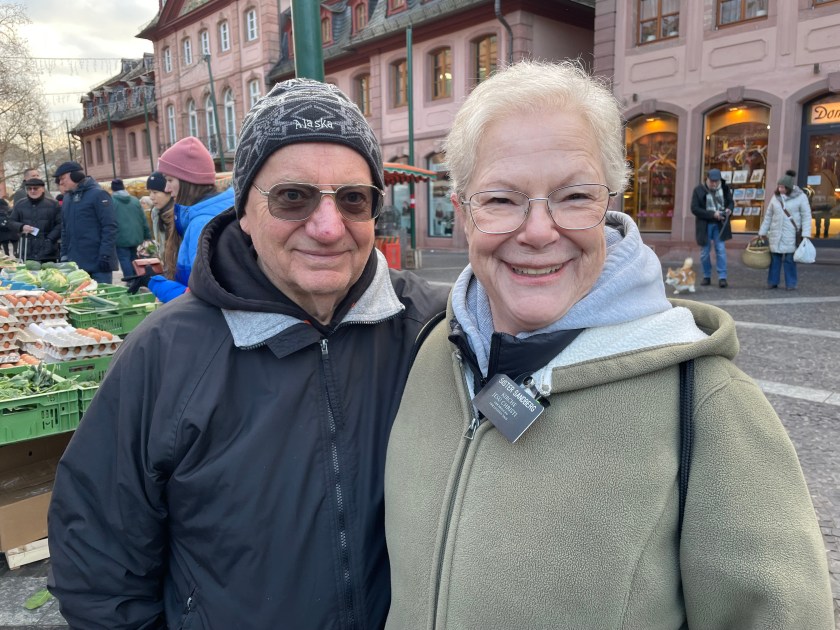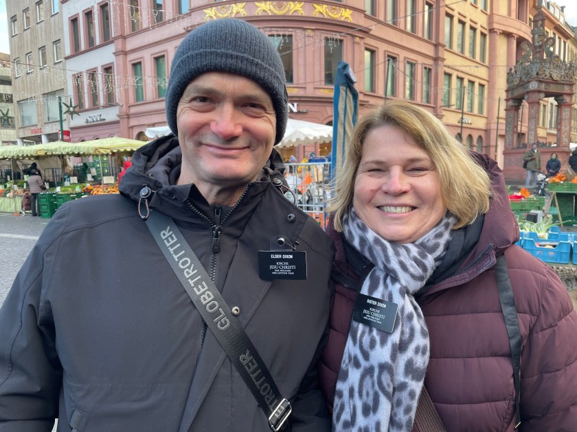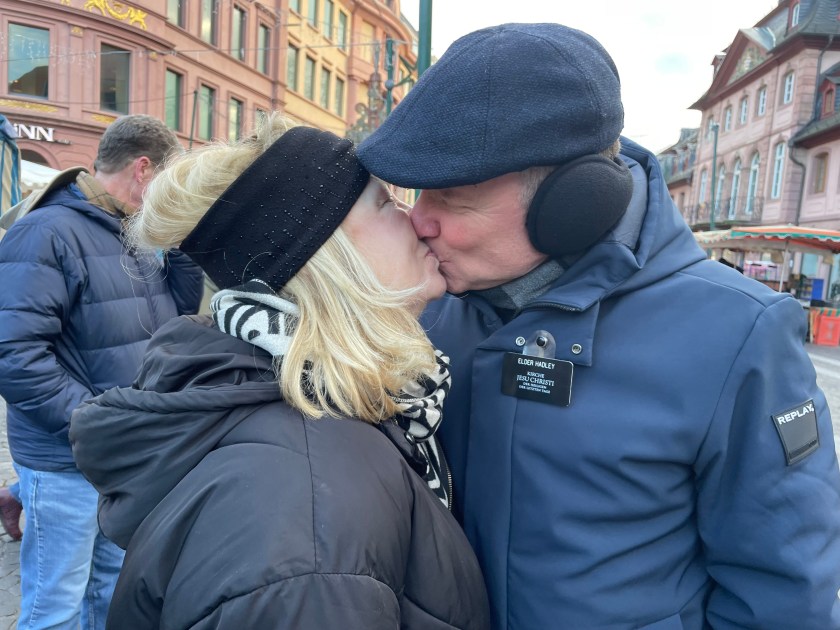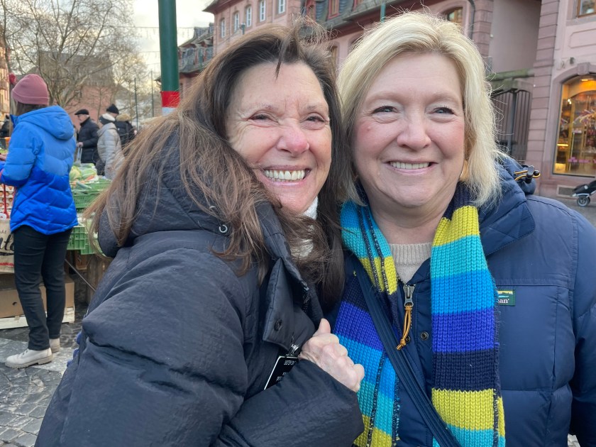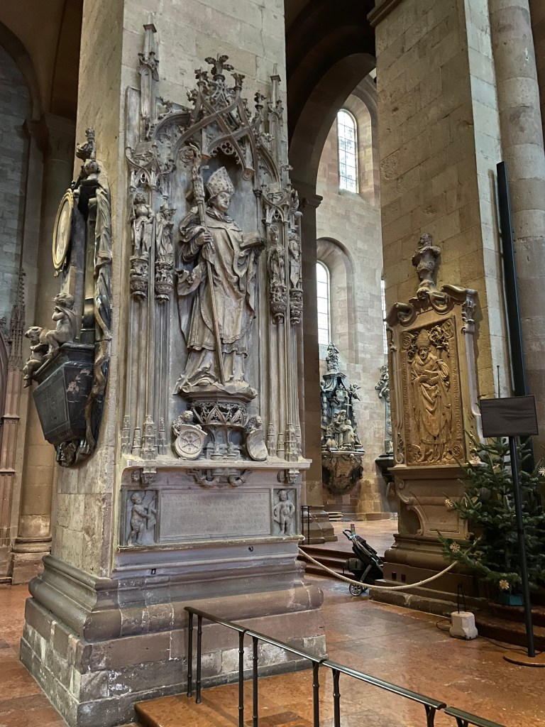 Here’s a marker that says on 27 Feb 1945, 1200 people died here in the heaviest bombing unleashed by Hitler in Mainz. NEVER AGAIN WAR.