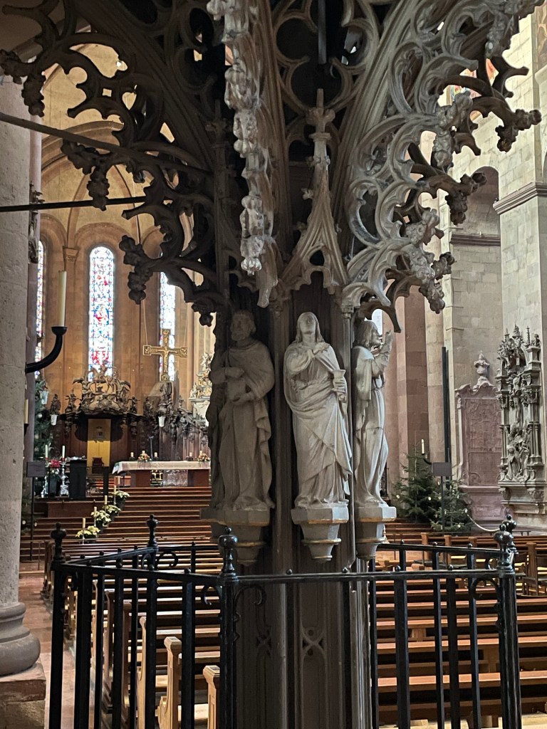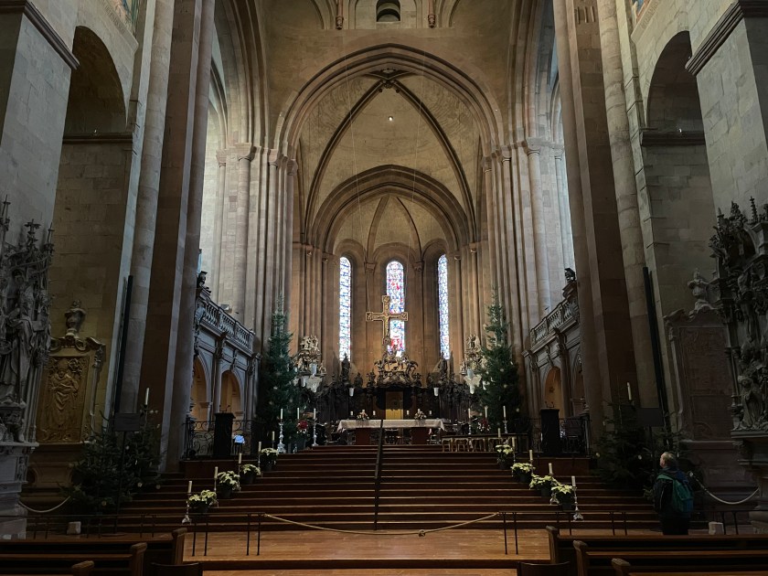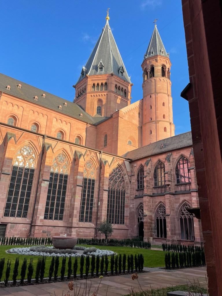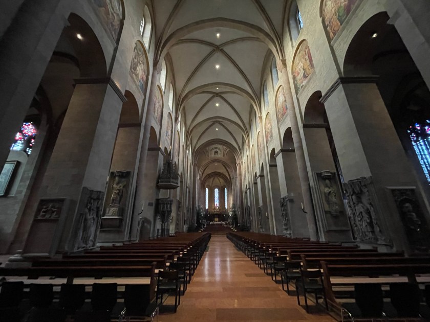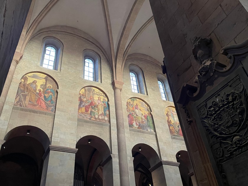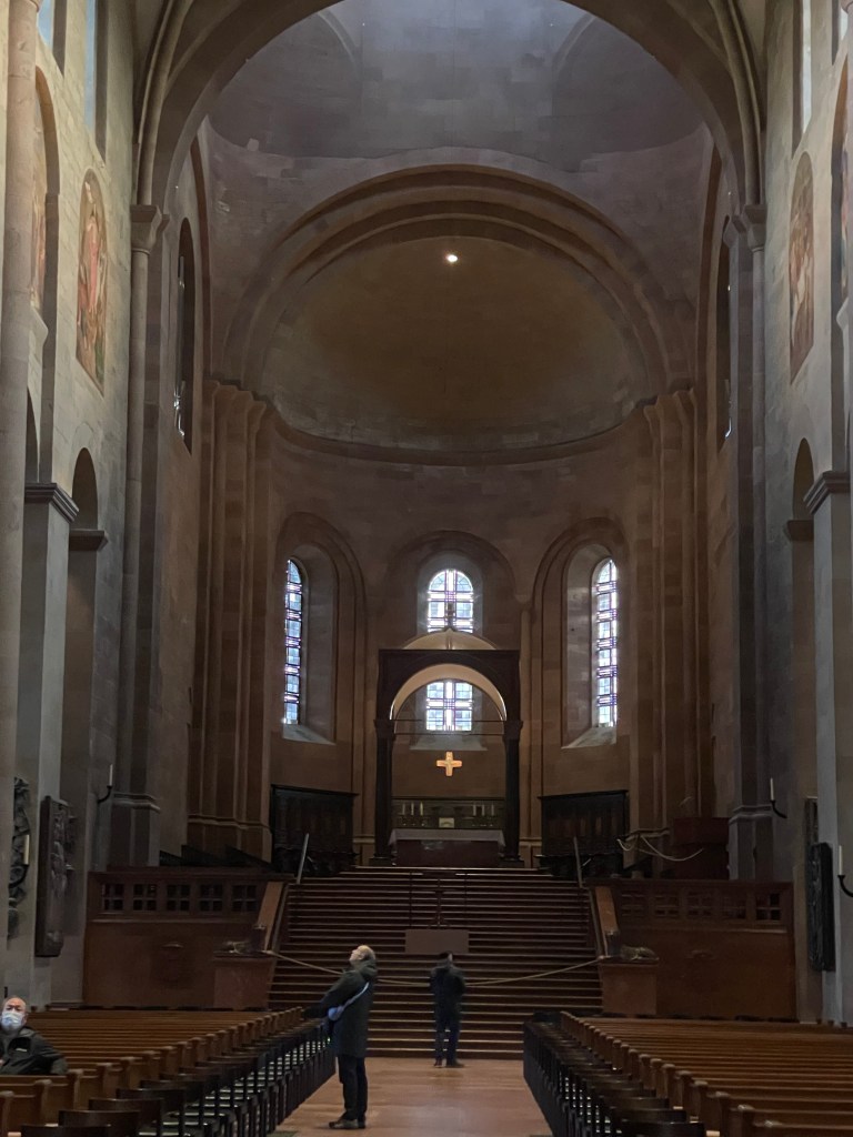 It was interesting to learn more about Chagall. I didn’t know he was Jewish and most of his family was killed in WWII. He’d fled to France. The Bishop in Mainz begged him to create a single window for the church here. It took him 2 years to decide to do it and when he finally agreed, he wanted it to represent reconciliation and peace. His themes were from the Old Testament.