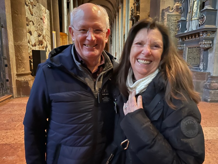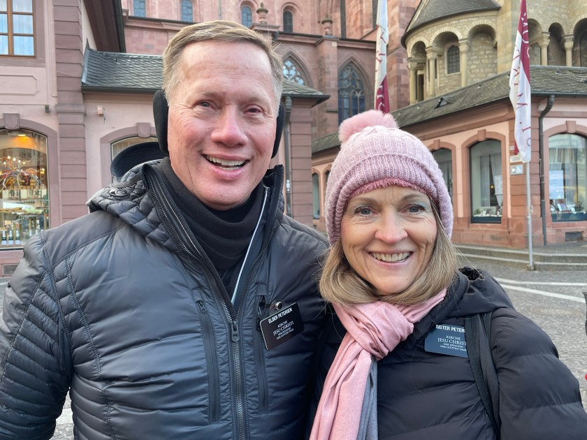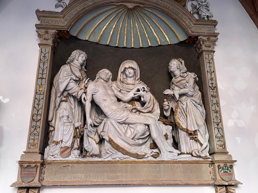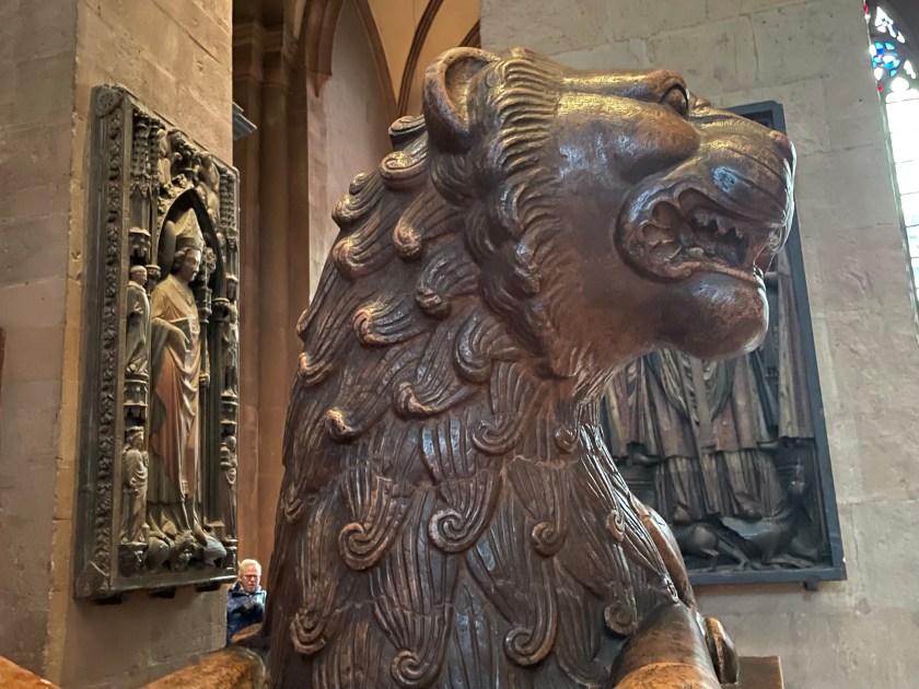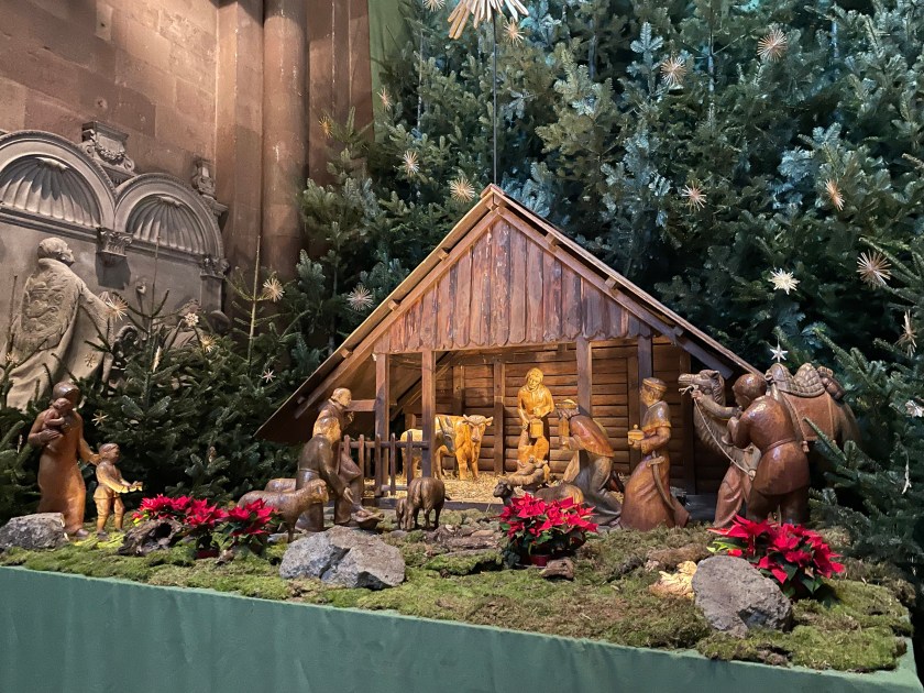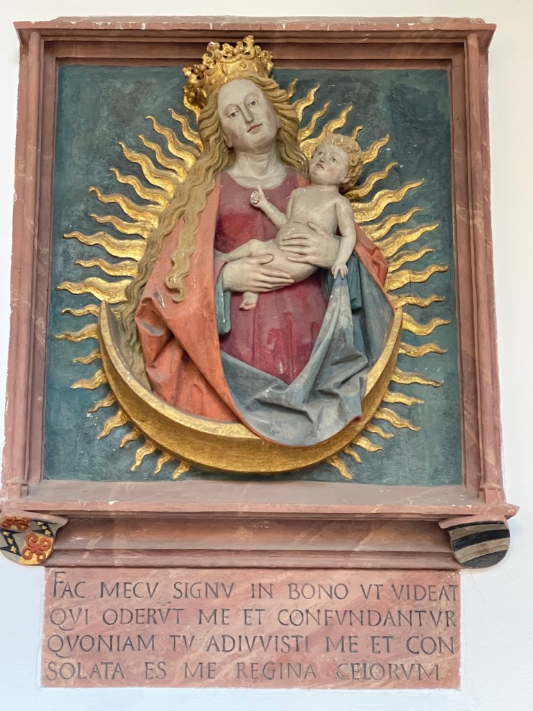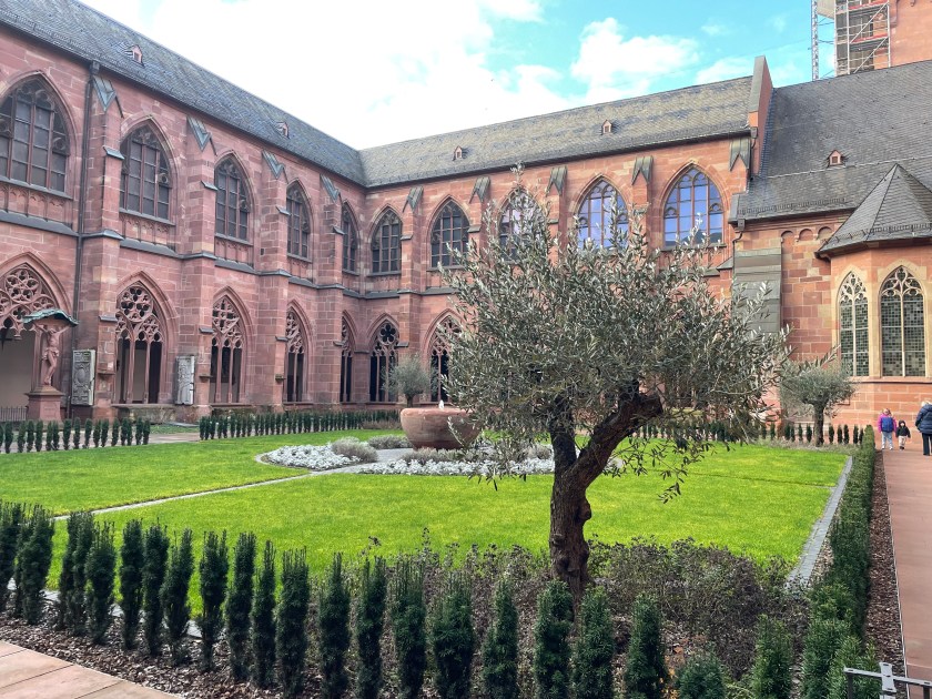 It was interesting to learn more about Chagall. I didn’t know he was Jewish and most of his family was killed in WWII. He’d fled to France. The Bishop in Mainz begged him to create a single window for the church here. It took him 2 years to decide to do it and when he finally agreed, he wanted it to represent reconciliation and peace. His themes were from the Old Testament.