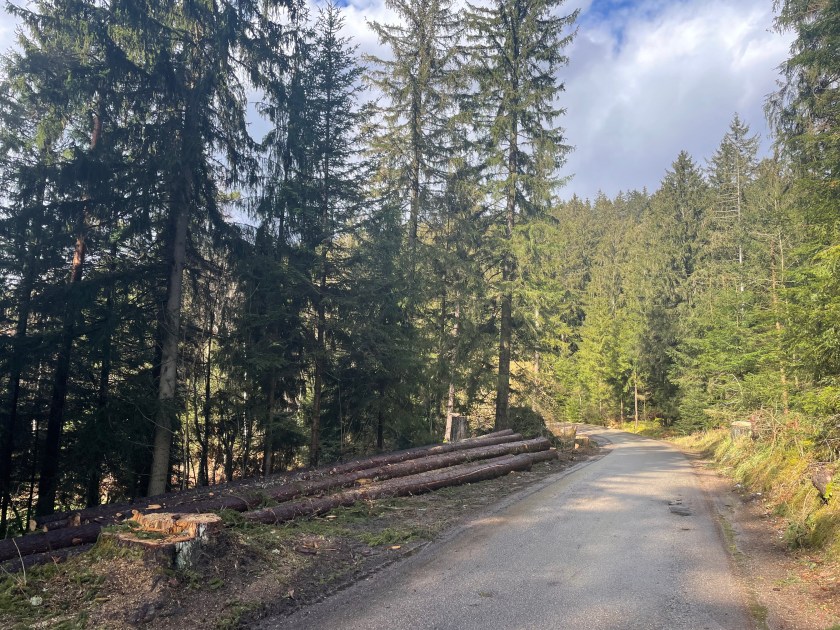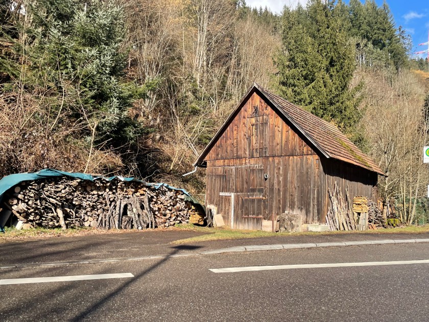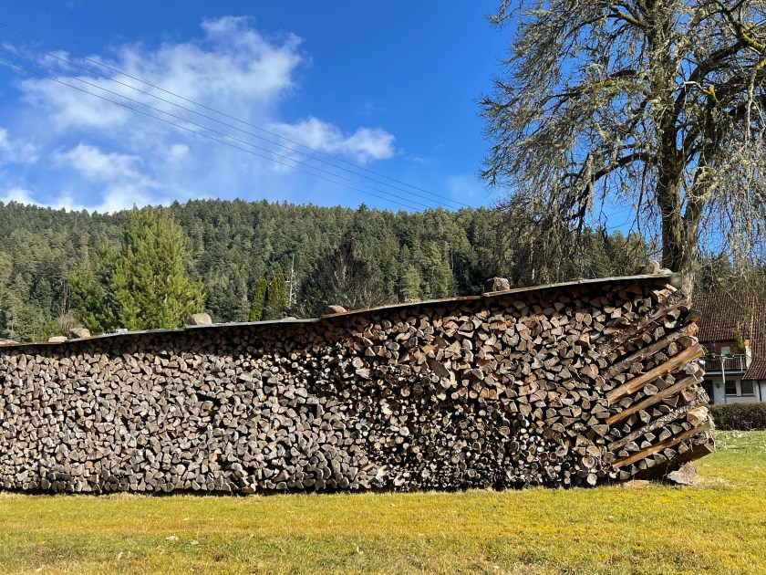 After Triberg, we were back on the road again, driving deeper and deeper into the Schwarzwald. It was breathtaking, surrounded by all the tall tall pines, straight as an arrow. There is a lot of logging done here, with stacks of these beautiful straight logs by the roadsides. Every home has perfectly stacked wood.