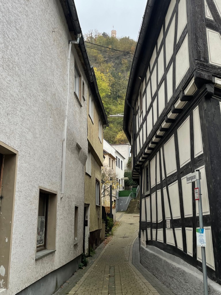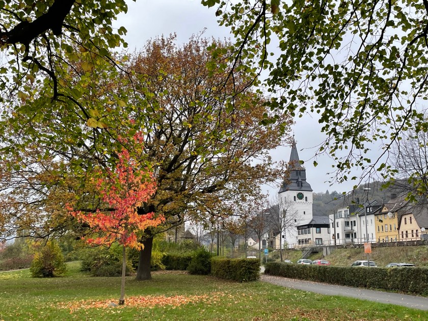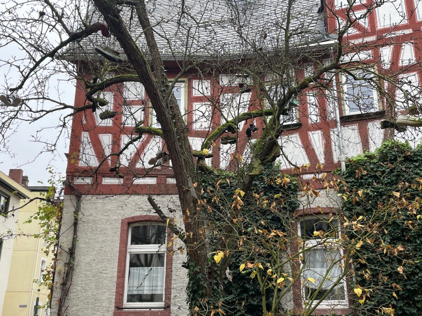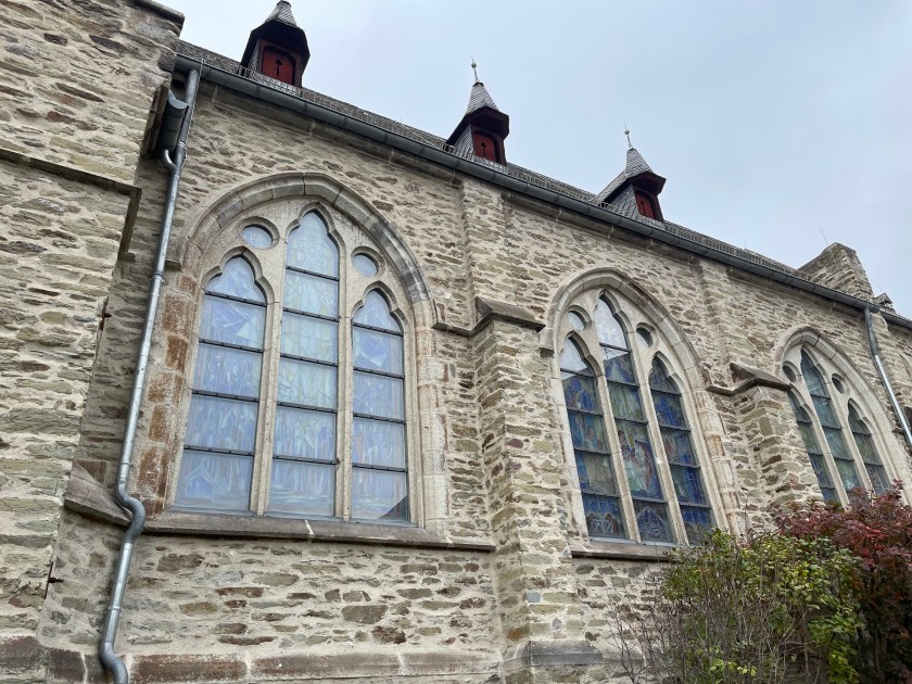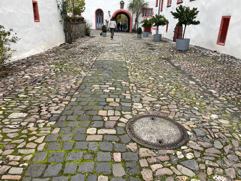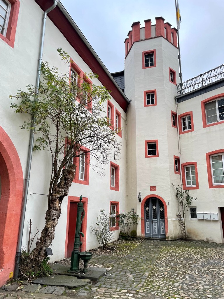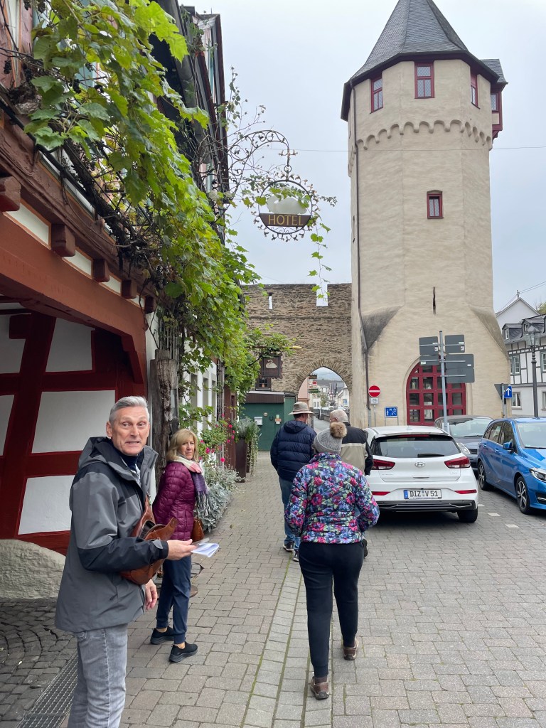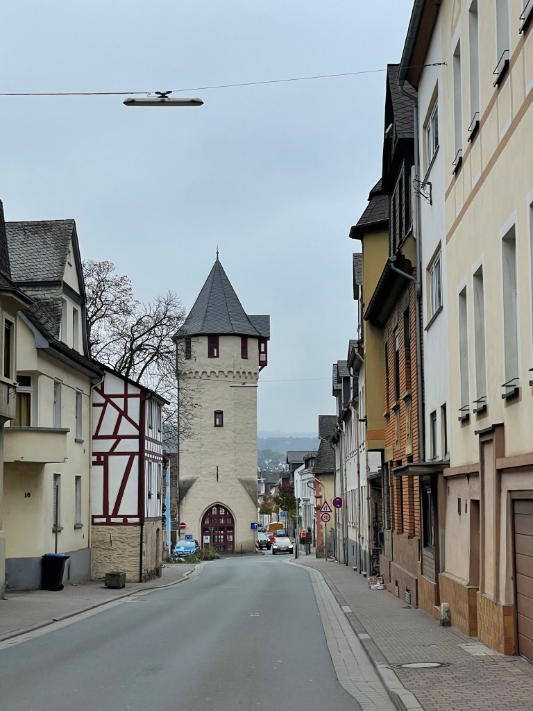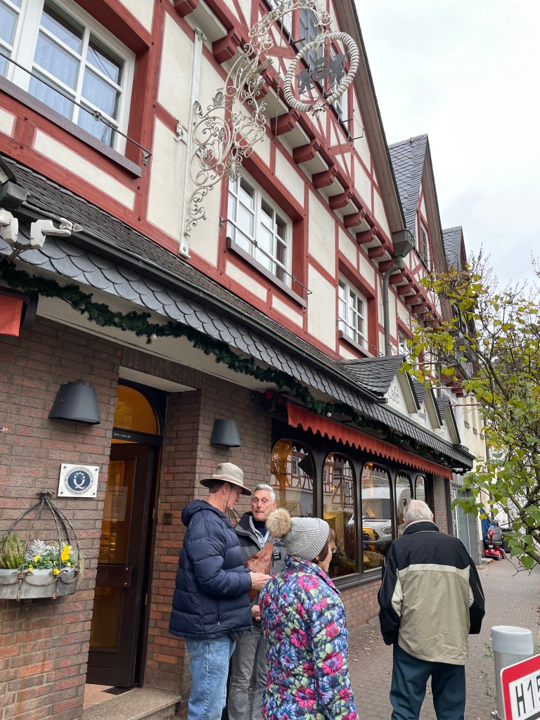 After visiting the Marksburg Castle up on the mountain top, we wanted to wander in the town below, so we went back to our cars and drove into town. The parking was in a strip along the road next to the river. There was a beautiful walking area along the river, like a promenade with trees and some benches. We felt like we were the only ones there.