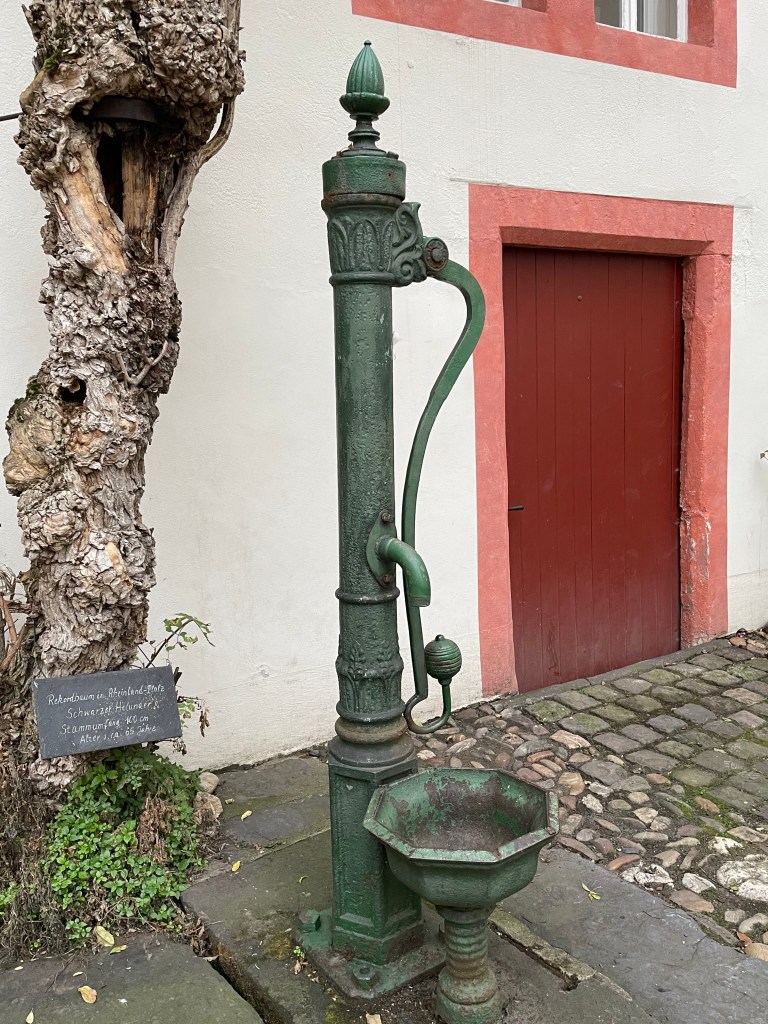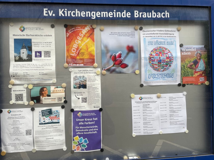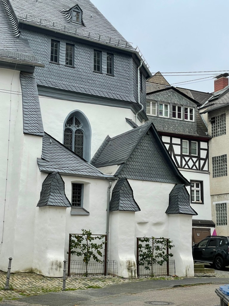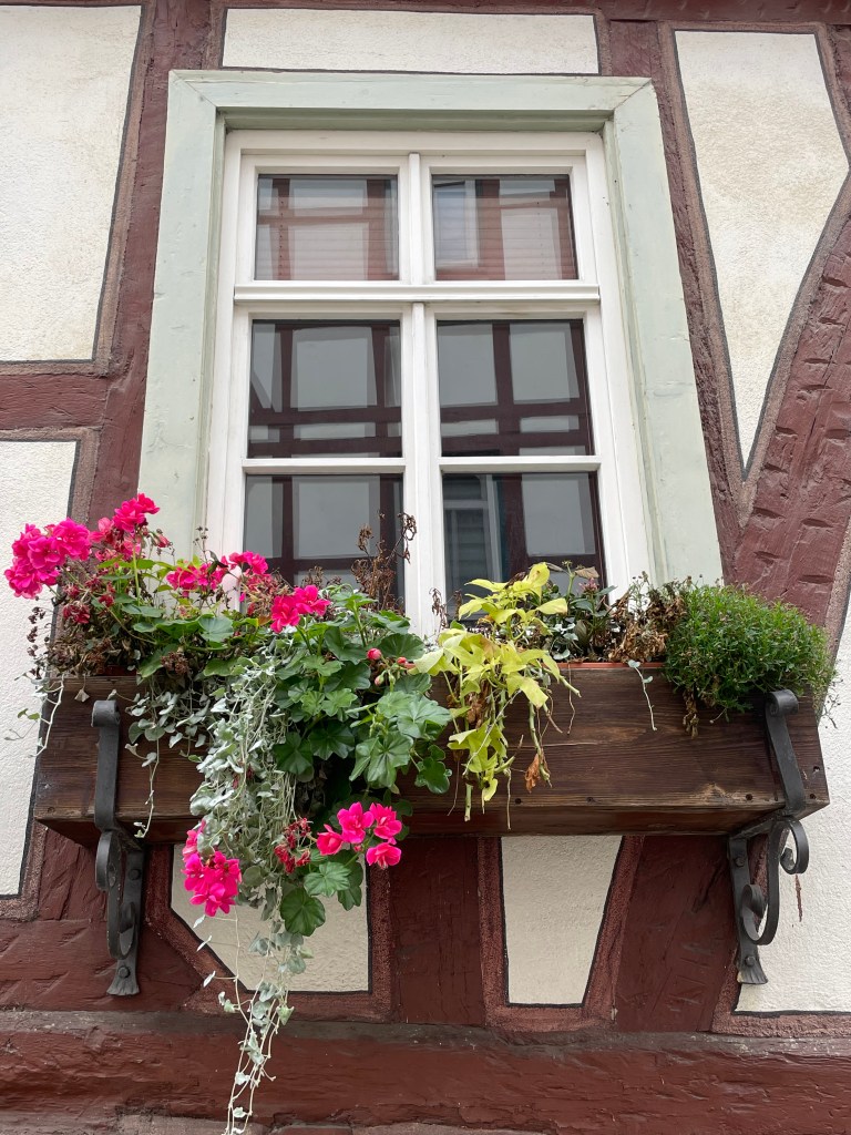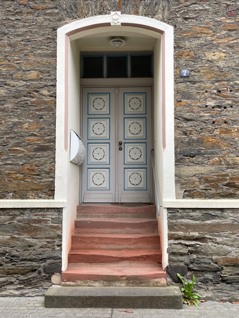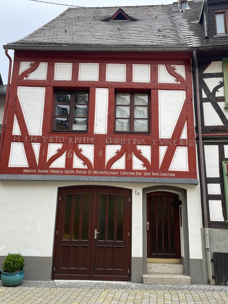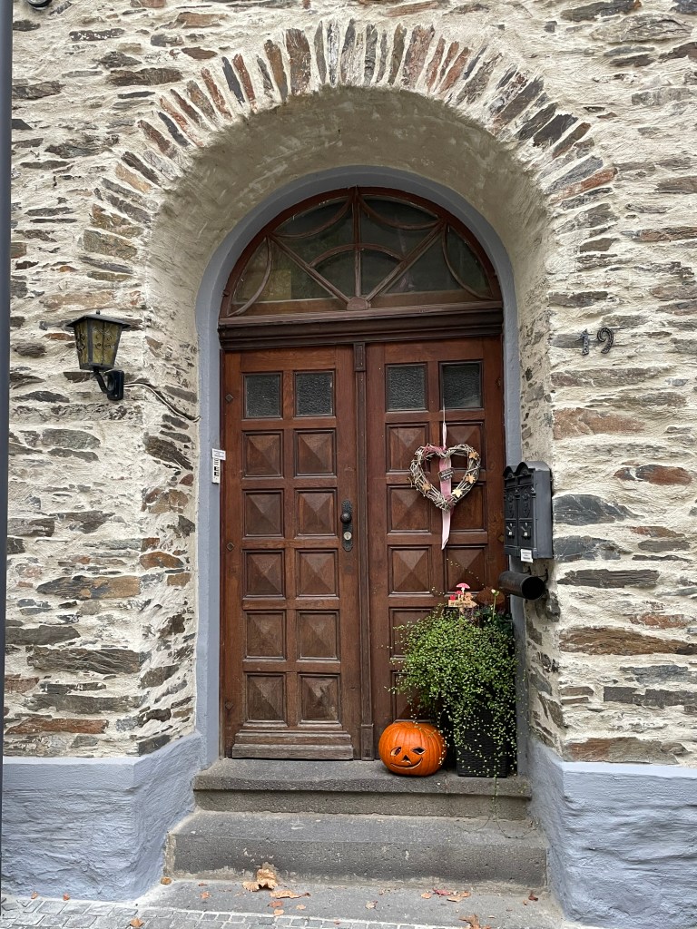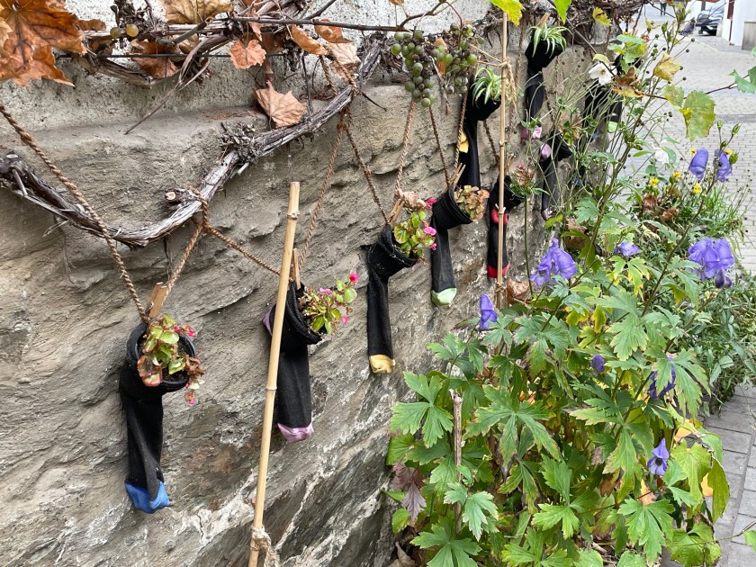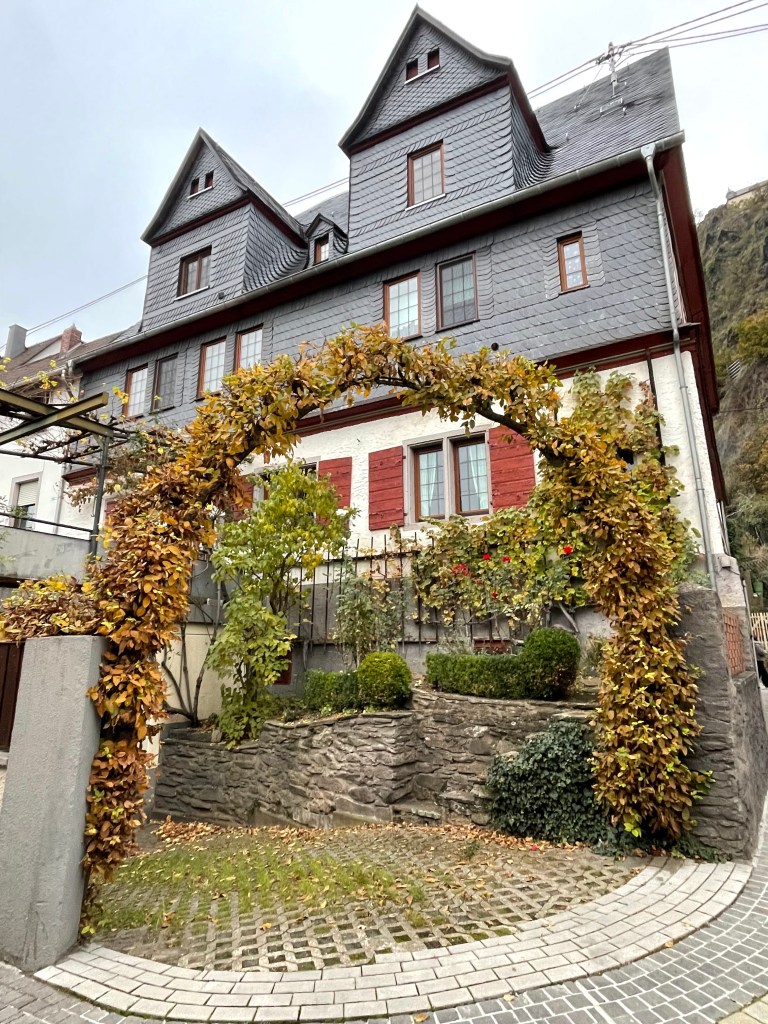 After visiting the Marksburg Castle up on the mountain top, we wanted to wander in the town below, so we went back to our cars and drove into town. The parking was in a strip along the road next to the river. There was a beautiful walking area along the river, like a promenade with trees and some benches. We felt like we were the only ones there.