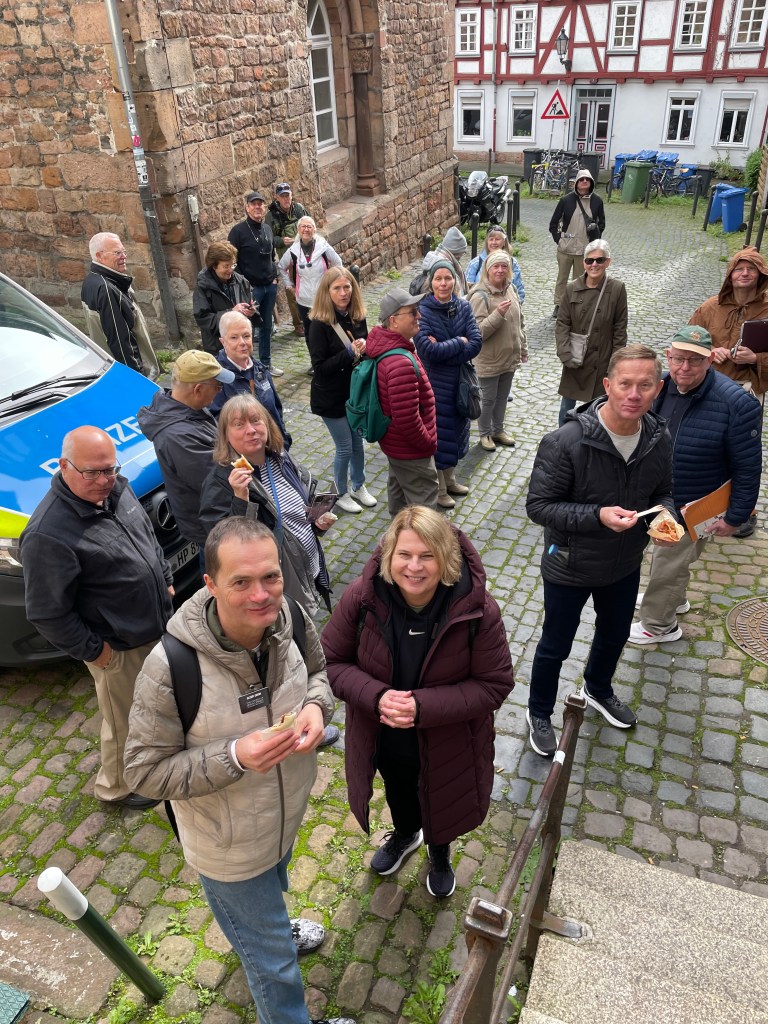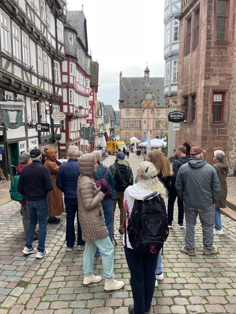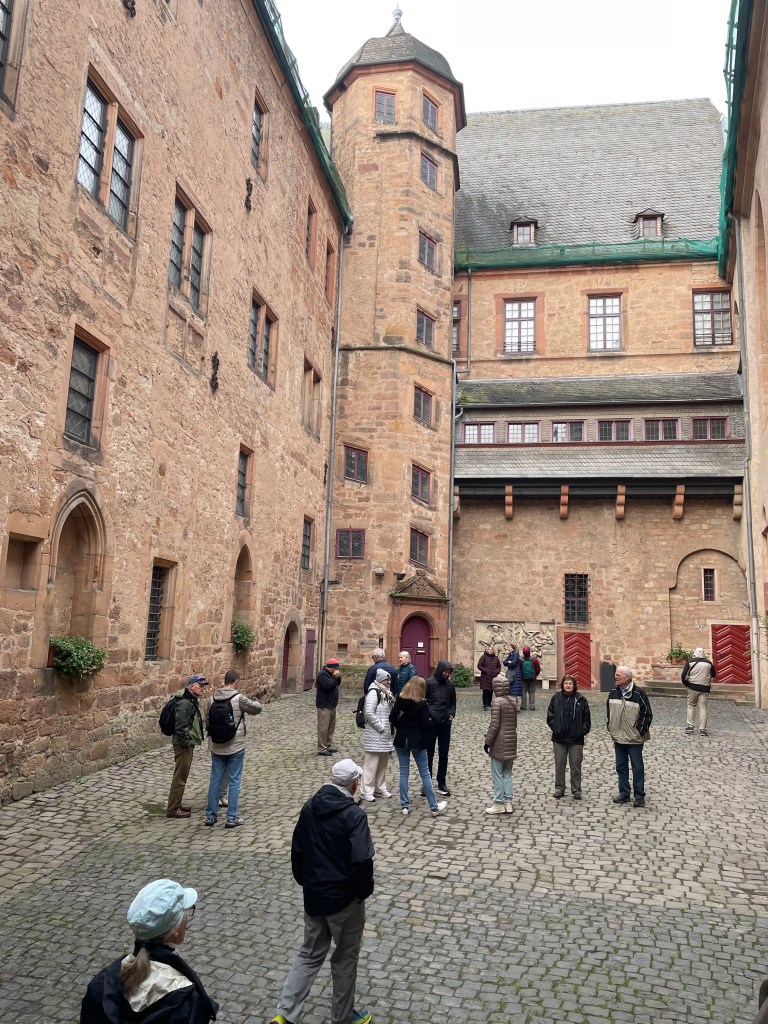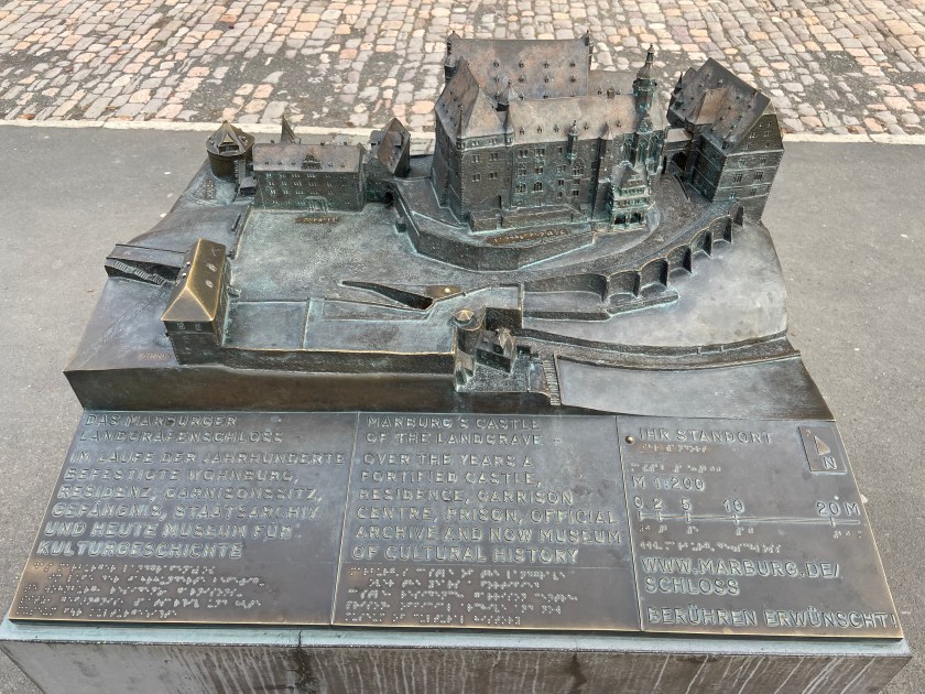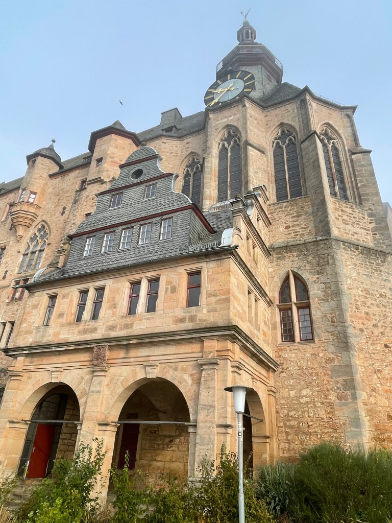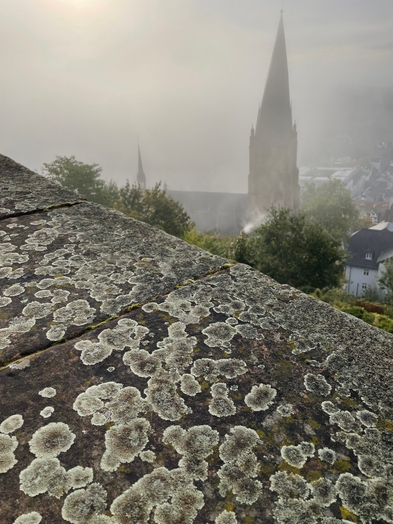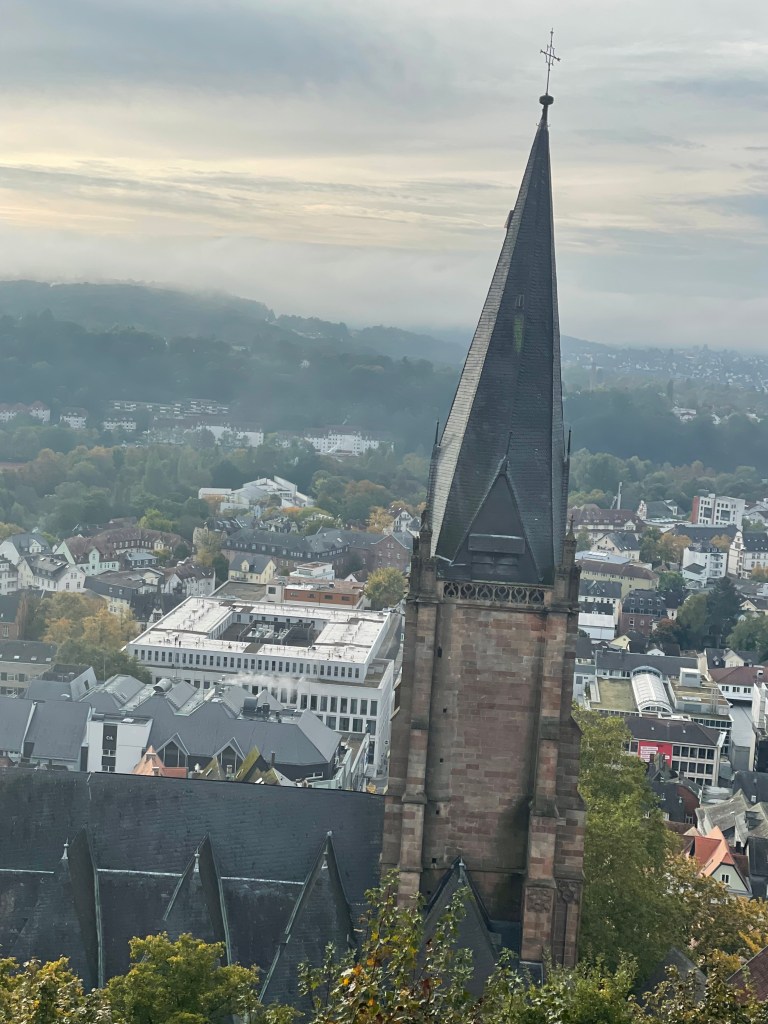 Sometimes group outings just sort of bubble up, like, “Hey, who wants to join us on a trip to Marburg??” Today we and several other couples drove about 1,5 hours north through foggy countryside to visit Marburg and the castle there. This was one of our first outings more than a year ago. Here’s a post from that visit. We were happy to go back.